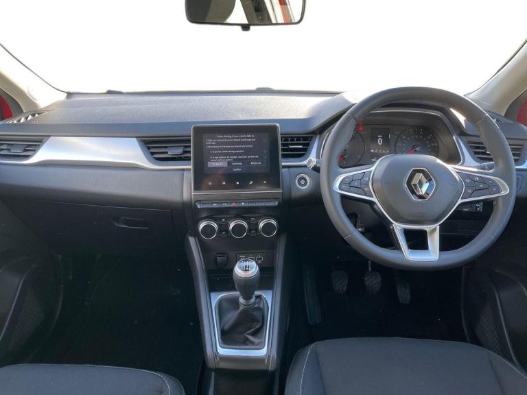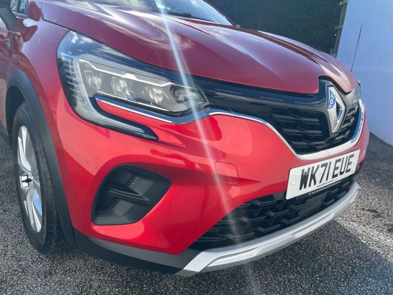 The 2021 Renault Captur 1.0 TCE 90 Iconic 5Dr Hatchback in ID Metallic Flame Red is an impressive vehicle with only 30000 miles on the clock. Boasting a sleek design with 17"" Bahamas alloy wheels and striking C-Shaped LED front and rear lighting signatures, this car is sure to turn heads on the road.Step inside, and you'll find a comfortable interior with cloth upholstery, a synthetic leather steering wheel, and automatic climate control. Stay connected and entertained with the EasyLink 7"" touchscreen featuring navigation, Bluetooth, DAB radio, and compatibility with Apple CarPlay and Android Auto.Safety features include ABS, Electronic Stability Control, lane departure warning, rear parking sensors, and a suite of airbags to ensure peace of mind on every journey. The Renault Captur also comes equipped with features like cruise control, automatic headlights, and rain sensors for added convenience.With its practicality, style, and advanced technology, the Renault Captur is a great choice for those looking for a modern and reliable hatchback.