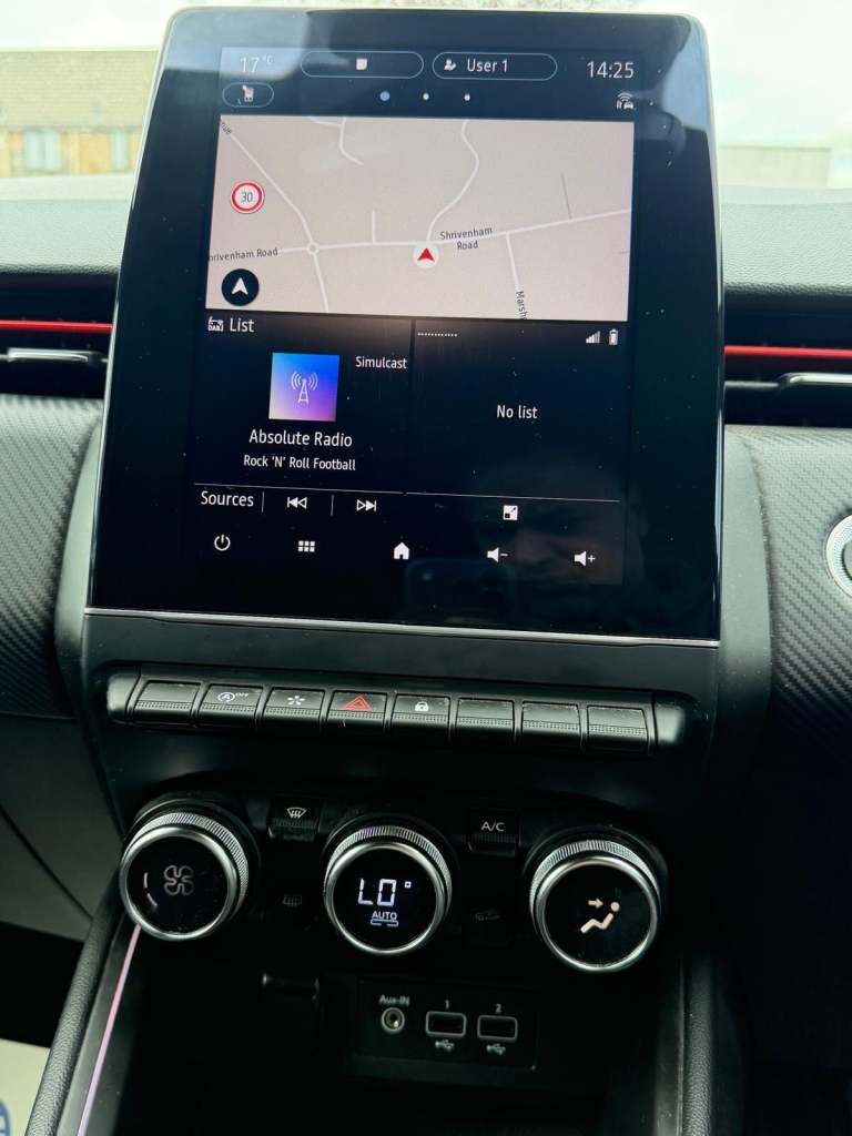 This 2021 Renault Clio TCe RS Line boasts a full service history and has had only one owner, offering excellent provenance. This Euro 6 compliant 1.0 litre petrol model comes in the sporty RS Line trim and features a clear vehicle history check. Inside, you'll find a 9.3 inch EASY LINK touchscreen with navigation, compatible with Android Auto and Apple CarPlay, alongside Bluetooth connectivity. The exterior is enhanced by full LED front and rear headlamps with integrated daytime running lights, and convenience is key with a handsfree keycard for keyless entry and push button start stop. Parking is made easier with rear parking sensors, and the cabin offers automatic climate control for your comfort.