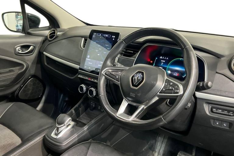 This 2022 Renault Zoe R135 Iconic is a superb example, having had only one owner and boasting an MOT valid until November 2026, with a clear vehicle history check. As a fully electric vehicle, it offers a substantial 55 kWh battery, providing a maximum range of 223 miles when new. Charging is convenient, taking approximately 9 hours and 25 minutes at home using a 7kW charger, while rapid public charging can take you from empty to 80% in just 1 hour and 10 minutes. This Iconic trim level comes equipped with a suite of advanced features designed for comfort and safety, including Blind Spot Warning with Blind Spot Assistance, a heated leather steering wheel, and heated seats. The Zoe R135 Iconic also enhances your driving experience with front and rear parking sensors, a rear view camera for effortless manoeuvring, and wireless smartphone charging. Its large boot space is a practical highlight, offering ample room for shopping or luggage, making it a versatile choice for everyday use. These features, combined with its electric powertrain and excellent provenance, position this Renault Zoe as a compelling and well maintained option compared to other vehicles in its class. Lifetime warranty available on this car, plus a £1,000 finance contribution when you part exchange. Voted UK Car Supermarket of the Year two years running, we offer 0% finance, part exchange, and lifetime warranties across our entire range. Every car is thoroughly inspected before sale and comes with a full history check, so you can buy with complete peace of mind. Buy with confidence on our best finance rates. Proud winners of the CarGurus Top-Rated Dealer 2022 and the MotoNovo Extra Mile Award. .10in TFT Instrument Cluster - Drivers Display, 17in Alloy Wheels - Elington - Diamond Cut in Black and Gold, 4 Airbags, ABS - Anti Lock Brakes, AC Charging - 22KW, AEBS - Advanced Emergency Braking System, ASR - Traction Control, Auto Dimming Rear View Mirror, Automatic Air Conditioning, Automatic High Beam, Automatic Wipers with Rain Sensors and Automatic Front Lights, Battery Charge Indicator, Blind Spot Warning, Chameleon Charger, Charging Cable - Type 2 - Mode 3, Charging Socket at Front of Vehicle Behind Renault Logo, Cruise Control, CSV - Understeer Control, Daytime Running Lights - LED, Door Mirrors - Body Coloured, Door Mirrors - Electrically Folding, E-Shifter with B-Mode, EASY LINK 9.3in Display with Nav, Eco Mode Button, Econometer, Electric Power Steering, Electric Windows - Front, Electric Windows - Rear, ESC - Electronic Stability Control, Exterior Elements - Gold, Fog Lights Surroundings - Gold, Front and Rear Parking Sensors with Rear View Camera, Front Fog Lights, Full LED Headlamps, Gear Change Indicator, Hands Free Parking, Headrests - Rear x3, Heated Leather Steering Wheel, Heated Rear Windscreen, Heated Seats, Hot Stamped Grill - Gold, HSA - Hill Start Assist, ISOFIX - Child Seat Fixing Points - Outer Rear Seats and Front Passenger, Keycard - Handsfree, LDW - Lane Departure Warning, LKA - Lane Keep Assist, Over Speed Prevention, Parking Brake - Automatic, RAID - Renault Anti Intruder Device - Automatic Door Locking, Range Indicator, Range Optimizer, Recycled TEP-Fabric - Black, Seats - Split Folding Rear, Shadow Grey, Shark Antenna, Soft Armrests in Door Panels, Steering Wheel - Height and Reach Adjustable, TCU - Telematic Control Unit, Tinted Rear Windows, Tyre Pressure Detection, Tyre Repair Kit, Wireless Charging for Smartphone, Z.E. Connected Services (3 Year Subscription From New), Z.E. Voice