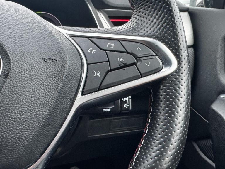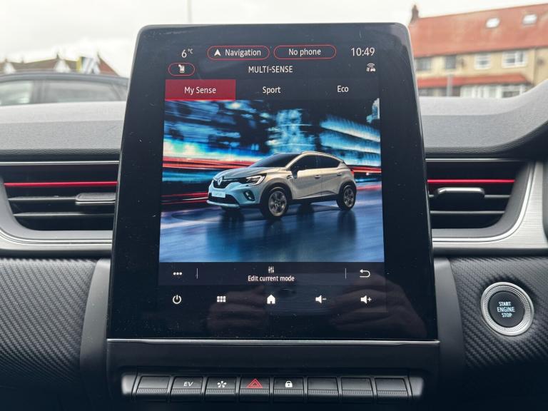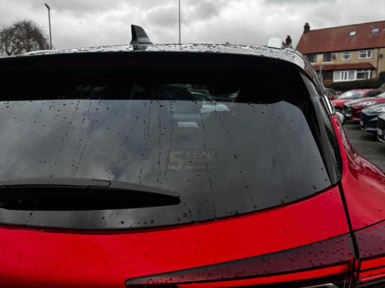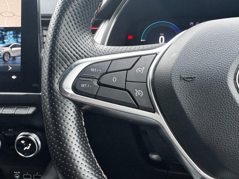 ..7'' TFT Driver information display, Cruise control + speed limiter, EasyLink 9.3'' portrait touchscreen with navigation, google search and traffic information, Eco mode, EV button to activate pure mode, Front and rear parking sensors with rear view camera, Gear change indicator, Lane departure warning system, Lane keep assist, Multisense with 3 driving modes + 8 ambient lighting colours, Renault automatic emergency assist, Smartphone integration compatible with Apple CarPlay and Android Auto, Traffic sign recognition with over speed prevention, Trip computer, Variable assistance power steering, DAB Radio with Bluetooth and USB, EasyLink multimedia system, scheduled charging, heating and air conditioning, Aluminium Renault sport door sills, Auto dimming rear view mirror, Automatic front wipers with rain sensors, Automatic headlights, Automatic high/low beam, Black side door protection with chrome effect, Body colour door handles, Body coloured bumpers, Body coloured door mirrors, C Shaped LED front and rear lighting signatures with 3D effect on the rear lights, Double chromed exhaust tailpipes element, Drivers one touch window with anti-pinch feature, Extra tinted glass in rear windows and tailgate, Frameless rear view mirror, Front and rear electric windows, Front bumper with F1 blade and honeycomb front grille, Front grille with chrome upper trim, Full LED headlights, Grey front and rear skid plate, LED daytime running lights, LED front fog lights, LED high level brake lights, LED rear fog light, Longitudinal roof bars, Rear side wing doors, Rear wiper, RS Line badges on front wing and hatch door, Shark fin antenna, 12V Accessory socket, 3 rear headrests, 60/40 split and fixed base rear seat bench, Aluminium pedals, Automatic climate control with one touch demist function and air quality regulator, Centre console storage tray, Dark roof lining, Flying console with e-shifter, Front head restraints, Glovebox, Heating system with pollen filter, Height adjustable driver's seat, Height adjustable passenger seat, Height/reach adjust steering wheel, ISOFIX child seat fixing points on rear outermost seats, LED front roof lights, Middle console with armrest and storage, Modular boot floor, Perforated leather steering wheel with red stitching and RS Line badge, Rear air vents, Red insert on air vent, RS Line sport synthetic leather/cloth upholstery, Single front passenger seat, Sliding rear bench, 3 rear seatbelts, ABS+EBA, AEBS, B Brake Mode - One pedal driving