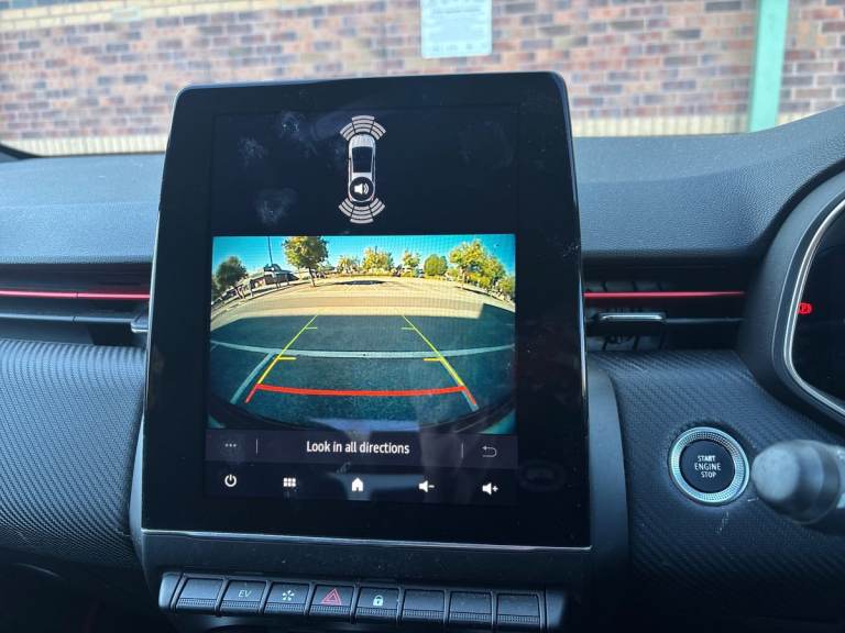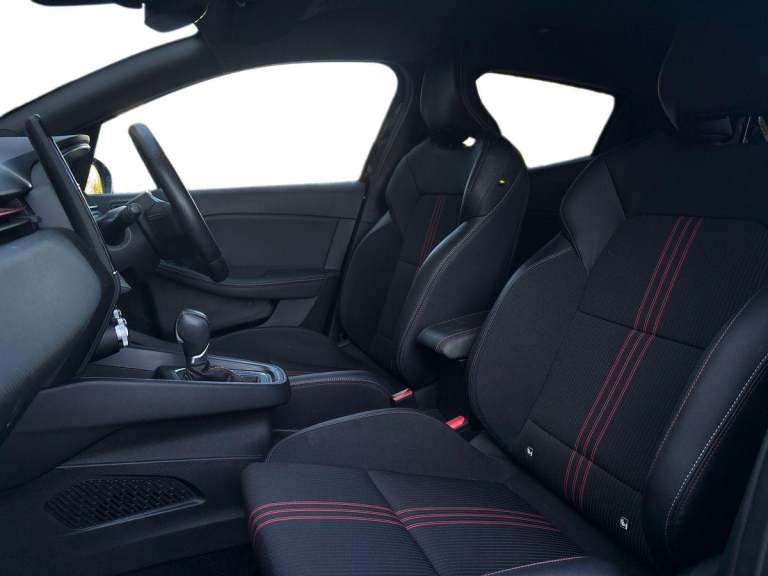 ..7'' TFT colour instrumental display, Cruise control + speed limiter, E-call, Easy link navigation with 9.3'' touchscreen+4x20W amplifier+FM DAB double tuner, sound auditorium, 2xUSB/1xjack/bluetooth, smartphone integration plus, Eco mode driving function, Front parking sensors, Gear change indicator, Lane departure warning system, Lane keep assist, Over speed prevention, Rear parking sensors, Rear view camera, Traffic sign recognition, Trip computer, Variable assistance electric PAS, E-TECH battery, Auto dimming rear view mirror, Auto light control and rain sensing wiper, Automatic headlights, Body colour door handles, Body colour door mirrors, Body coloured bumpers, Body coloured rear spoiler, Chrome front grille, Chrome window surround, Drivers one touch window with anti-pinch feature, Electric adjustable/heated/folding door mirrors, Electric front windows, Electric rear windows, Exterior rear hidden door handles, Extra tinted glass on rear windows + tailgate, Full C-shape LED front and rear signature lighting, Full LED front and rear headlamps integrating daytime running lights at the front and rear, Gun Metal insert on lower side doors with Clio embossing, LED front fog lights, LED Roof light, Rear fog lights, Rear side wing doors, Rear wiper, RS Line badging, RS Line exterior styling, RS Line side marker chrome, RS Line sports front bumper, RS Line sports lower grill, RS marker chrome gun metal grey sport rear bumper with chrome oval exhaust pipe, Shark fin antenna, Third brake light, Variable speed on front windscreen wipers, 12V Accessory socket, 3 rear height adjustable headrests, 3 seat bench in 2nd row, 6.2L front glovebox, 60/40 split rear seats, Air recirculation control, Auto climate control, Black headlining, Dark roof lining and aluminimum pedal set, Driver's seat height adjustment, Front cupholders, Front decor strip in red, Front door storage bin, Height adjustable front headrests, Height/reach adjust steering wheel, Isofix system on outer rear seats, Multi function steering wheel, Multisense including ambient lighting and selectable drive modes, Pollen filter, RS branded top grain leather steering wheel, RS Line cloth upholstery, RS Line Interior trim including airvent stripe and gearshifter in red, Single front passenger seat, System for Restraint and Protection SRP-front seats, Parking Pack - Clio, Storage pack - Clio, 3 point seatbelts on all rear seats, ABS+EBD+Brake assist, Active emergency braking system, Curtain airbags,