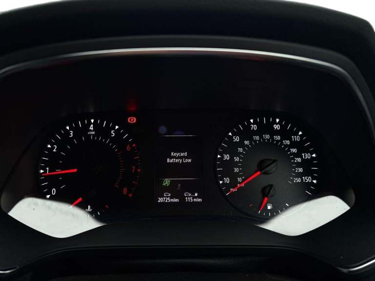 ..4.2'' TFT Driver information display, Cruise control + speed limiter, EasyLink 7'' touchscreen with navigation, google search and traffic information, Eco mode, Gear change indicator, Lane departure warning system, Lane keep assist, Rear parking sensor, Renault automatic emergency assist, Smartphone integration compatible with Apple CarPlay and Android Auto, Traffic sign recognition with over speed prevention, Trip computer, Variable assistance power steering, DAB Radio with Bluetooth and USB, 2 reverse gear LED lamps and 1 rear LED fog lamp in the bumper, Automatic front wipers with rain sensors, Automatic headlights, Black side door protection, Body colour door handles, Body coloured bumpers, Body coloured door mirrors, Day time running light, Drivers one touch window with anti-pinch feature, Extra tinted glass in rear windows and tailgate, Front and rear electric windows, Full LED headlights, Grey front and rear skid plate, LED front fog lights, LED high level brake lights, LED turn indicators on door mirrors, Rear side wing doors, Rear wiper, 12V Accessory socket, 3 rear headrests, 60/40 split and fixed base rear seat bench, Automatic climate control with one touch demist function and air quality regulator, Centre console storage tray, Cloth upholstery, Front head restraints, Glovebox, Heating system with pollen filter, Height adjustable driver's seat, Height/reach adjust steering wheel, ISOFIX child seat fixing points on rear outermost seats, Middle console with armrest and storage, Rear air vents, Single front passenger seat, Sliding rear bench, Standard bulb in front roof lights, Synthetic leather steering wheel, 3 rear seatbelts, ABS+EBA, Distance warning alert, Driver and front passenger, side, head and curtain airbags, Driver height adjustable seat belt, Electric parking brake, Electronic stability control, Front and rear no seatbelt warning sound, Front dash warning indicator in case of heavy braking, Front driver and passenger side airbag deactivation, Hill start assist, Rear door and window child locking function for rear door, Tyre pressure warning light, Anti drill door locks and locking fuel cap, Central door locking, Deadlocking system, Hands free keycard with push button and start/stop function, RAID (Renault Anti-Intruder Device) automatic door locking, Black soft touch dashboard, 17'' Ediris diamond cut alloy wheels
