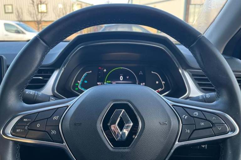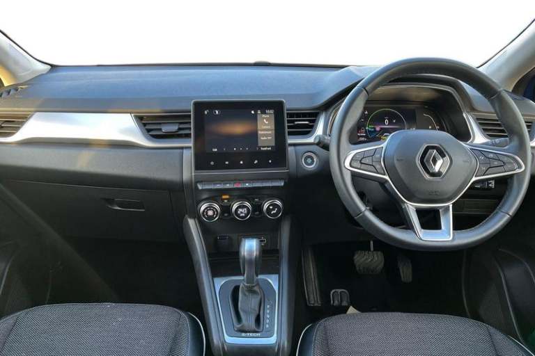 7 TFT Driver information display, Cruise control + speed limiter, EasyLink 7 touchscreen with navigation, google search and traffic information, Eco mode, EV button to activate pure mode, Front and rear parking distance sensors, Gear change indicator, Lane departure warning system, Lane keep assist, Multisense with 3 driving modes + 8 ambient lighting colours, Rear view camera, Renault automatic emergency assist, Smartphone integration compatible with Apple CarPlay and Android Auto, Traffic sign recognition with over speed prevention, Trip computer, Variable assistance power steering, Wireless phone charger, 2 reverse gear LED lamps and 1 rear LED fog lamp in the bumper, Auto dimming rear view mirror, Automatic front wipers with rain sensors, Automatic headlights, Automatic high/low beam, Black side door protection with chrome effect, Body colour door handles, Body coloured bumpers, Body coloured door mirrors, C Shaped LED front and rear lighting signatures with 3D effect on the rear lights, Chrome around front air deflectors, on front wing deco element and window lining, Day time running light, Drivers one touch window with anti-pinch feature, Extra tinted glass in rear windows and tailgate, Front and rear electric windows, Front grille with chrome upper trim, Full LED headlights, Grey front and rear skid plate, LED high level brake lights, LED rear fog lights, LED turn indicators on door mirrors, Longitudinal roof bars, Rear side wing doors, Rear wiper, Shark fin antenna,