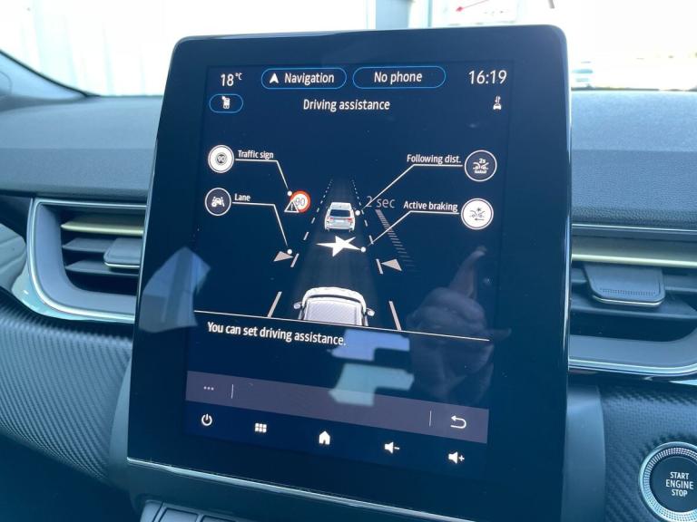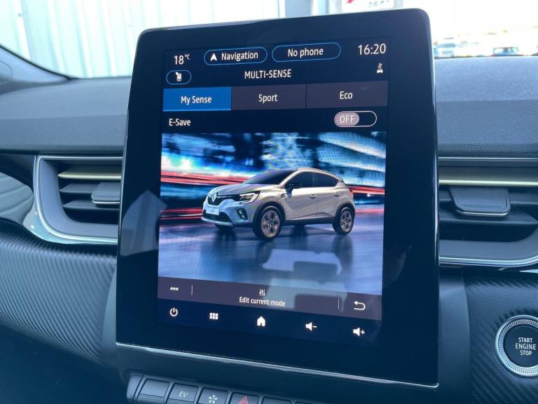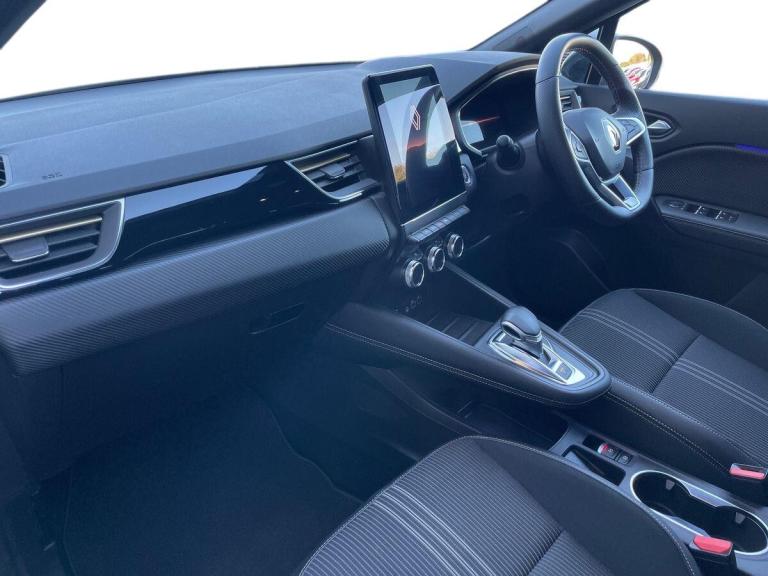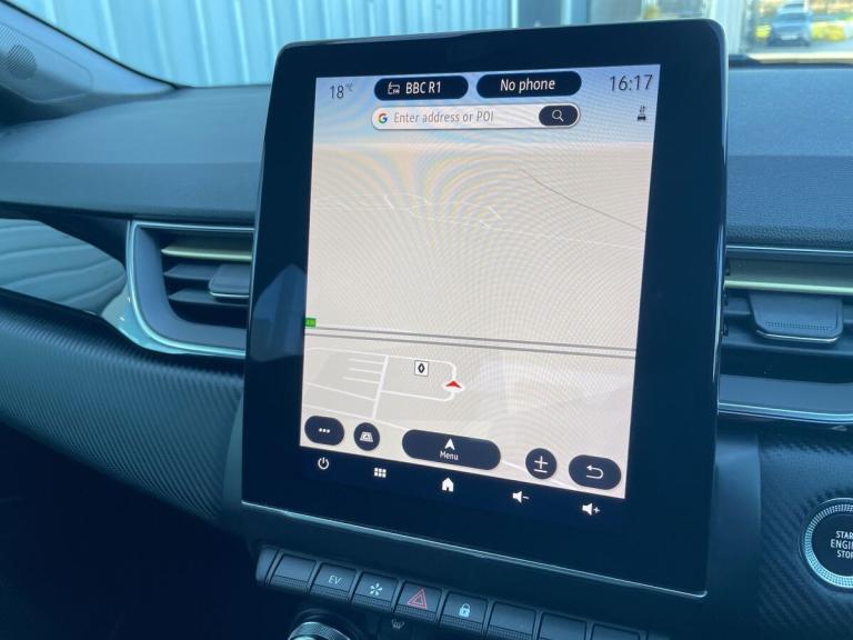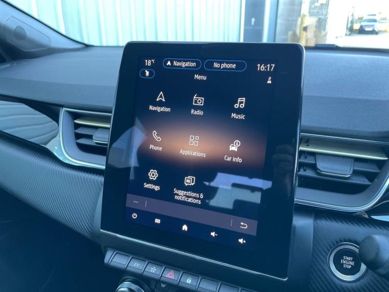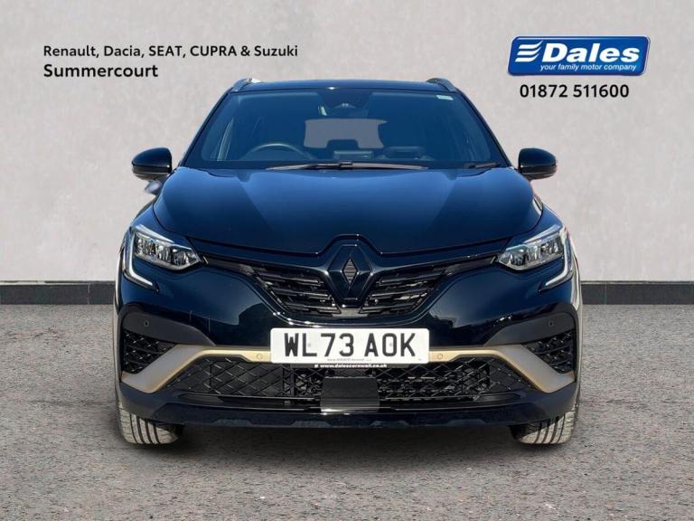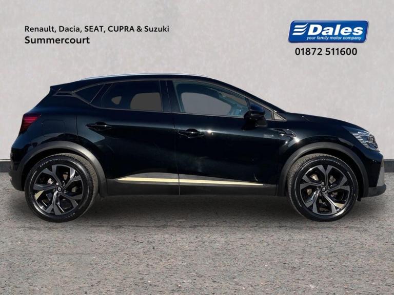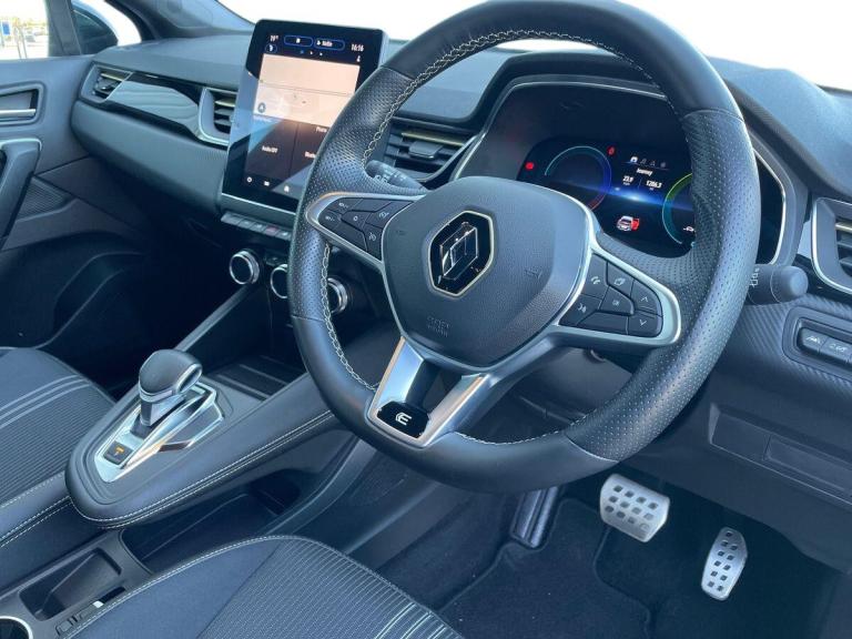 Introducing the Renault Captur 1.6 E-tech Full Hybrid 145 Engineered 5Dr Auto Hatchback in stunning Metallic Diamond Black. This stylish hatchback from Renault boasts a petrol hybrid engine with just 11605 miles on the clock, making it an efficient choice for environmentally-conscious drivers. The Captur is packed with features such as 18"" E-Tech engineered alloy wheels with gold inserts, automatic climate control, automatic headlights, and a 10"" TFT driver information display.Step inside the Captur to find a sleek interior with E-Tech engineered leather/suede upholstery and gold detailing on the dashboard and steering wheel. The EasyLink 9.3"" touchscreen offers navigation, Google search, and traffic information, while the smartphone integration allows for seamless connectivity with Apple CarPlay and Android Auto. Safety features include lane departure warning, cruise control, rear view camera, and Renault's automatic emergency assist.Enjoy a comfortable ride with height adjustable seats, automatic climate control, and the ECO mode for optimal efficiency. Whether you're cruising around town or embarking on a long journey, the Renault Captur offers a luxurious driving experience with its advanced technology and hybrid engine.