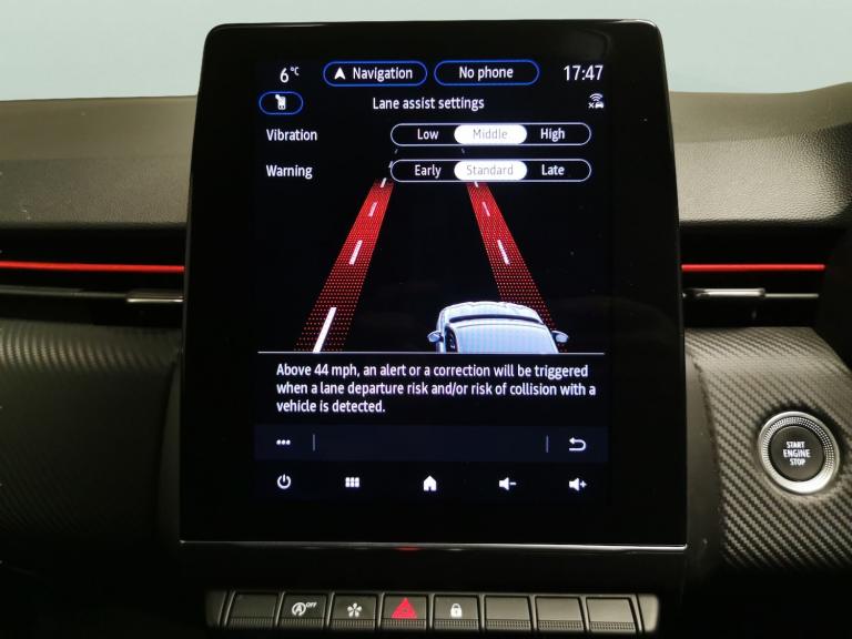 Experience the Renault Clio RS Line in stylish white, perfect for drivers who enjoy modern technology. Navigate with ease using the integrated Sat Nav and reversing camera, while the lane departure warning system and traffic sign recognition keep you secure on every journey. Enjoy relaxed drives with cruise control, and customise your experience thanks to selectable driving modes. Stay connected with Bluetooth and travel in comfort with climate control and air conditioning. A fantastic blend of sporty design and clever features awaits you. 3 services recorded, last serviced on 29/12/2025 at 18,860 miles. MOT to 13/01/2027. Visit our website for service history, online valuation, full vehicle specification plus multiple images. Any feature/option specified here is from 3rd party data. We cannot guarantee the accuracy of any specification supplied by a 3rd party. We recommend that you physically check the specification of the vehicle on site prior to purchase. This information does not form part of the buying contract. Terms & Conditions apply. We have over 2,000 cars available from our 10 national branches, check our website to see all our stock. Our Trustpilot rating is 4.4/5 with over 9,000 reviews.