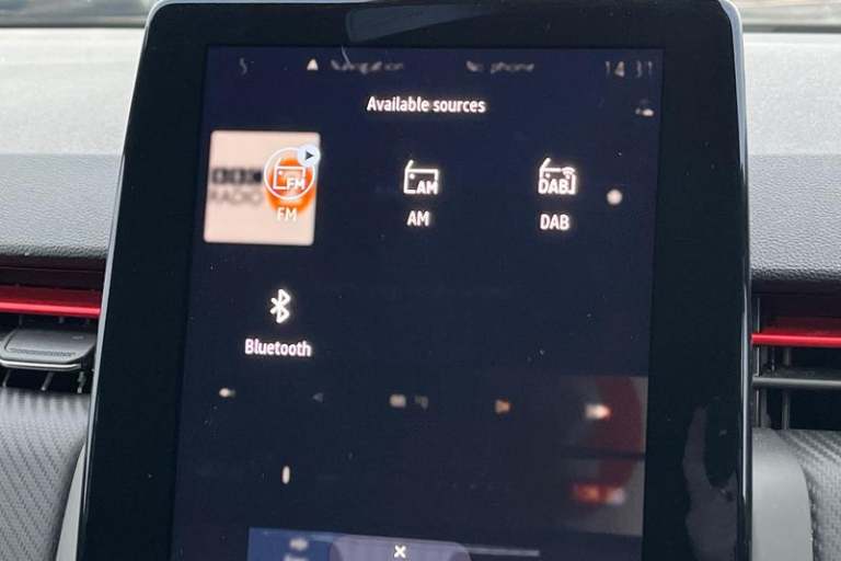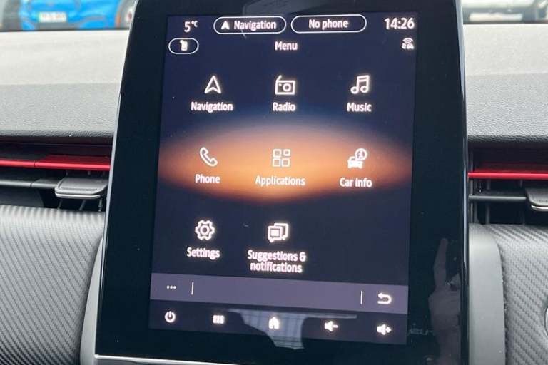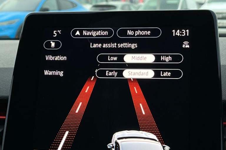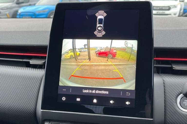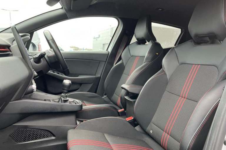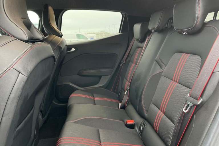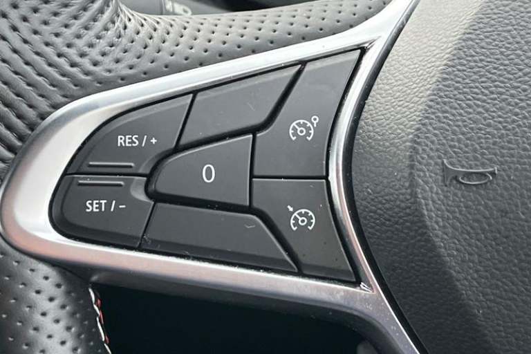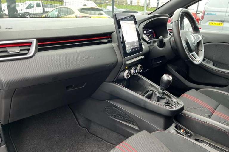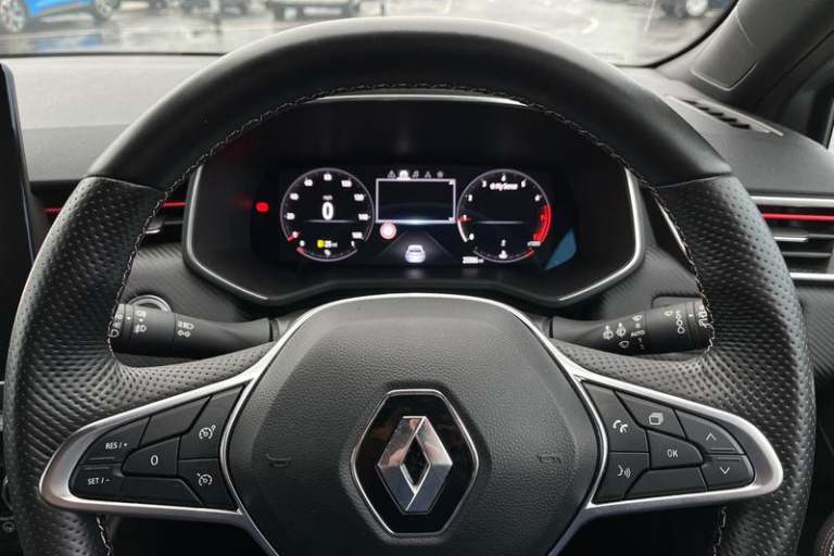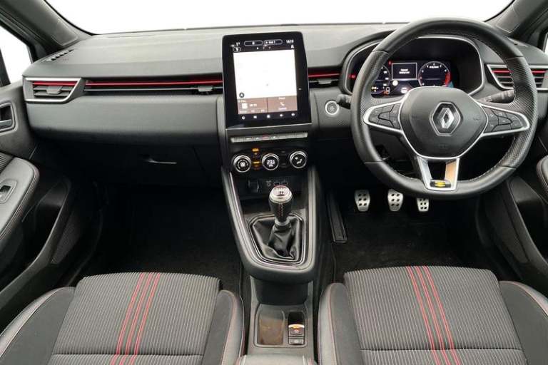 10 driver information display cluster, Apple car play/Android Auto, Cruise control + speed limiter, E-call, Easy link navigation with 9.3 touchscreen+4x20W amplifier+FM DAB double tuner, sound auditorium, 2xUSB/1xjack/bluetooth, smartphone integration plus, Eco mode driving function, Emergency call system, Front parking sensors, Gear change indicator, Lane departure warning system, Lane keep assist, Over speed prevention warning, Rear parking sensors, Rear view camera, Traffic sign recognition, Trip computer, Variable assistance electric PAS, Wireless phone charger, Auto dimming rear view mirror, Auto high beam assist, Auto light control and rain sensing wiper, Automatic headlights, Black wing mirrors, Body colour door handles, Body colour rear roof spoiler, Body coloured bumpers, Chrome exhaust tailpipe, Chrome front grille, Drivers one touch window with anti-pinch feature, Electric front windows, Electric rear windows, Exterior rear hidden door handles, Extra tinted glass on rear windows + tailgate, Front and rear LED roof light x 2, Full C-shape LED front and rear signature lighting, Full LED front and rear headlamps integrating daytime running lights at the front and rear, Gun Metal insert on lower side doors with Clio embossing, Heated rear windscreen, LED front fog lights, LED reverse light, LED third brake light, Manual folding wing mirror mechanism, Manually adjustable door mirrors, Rear fog lights, Rear side wing doors, Rear wiper, RS Line badging, RS Line exterior