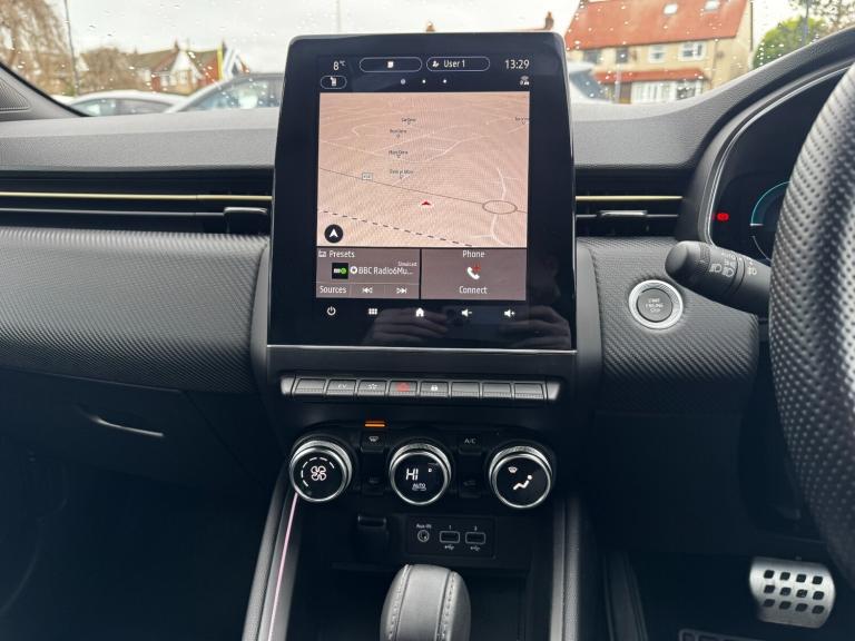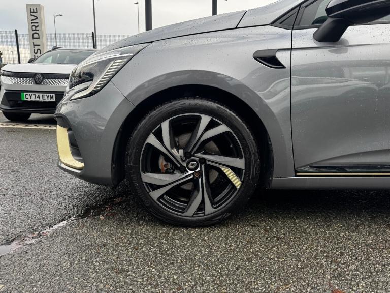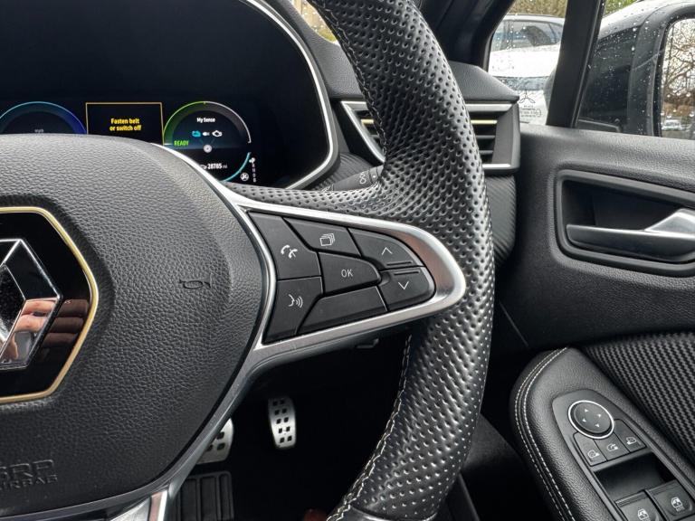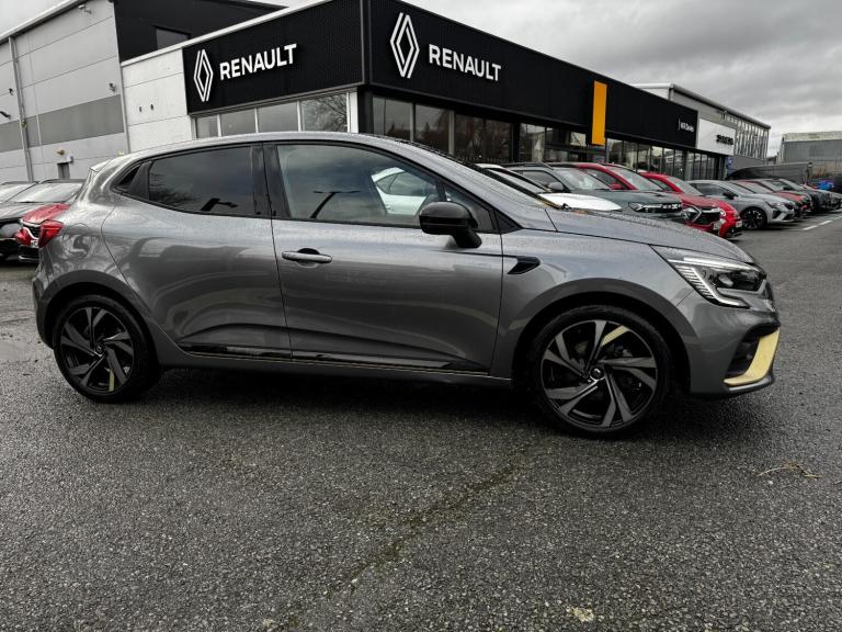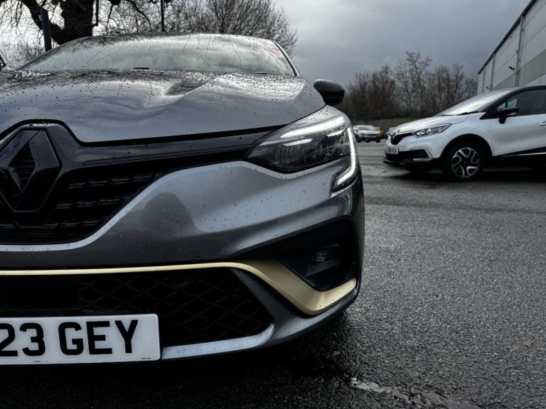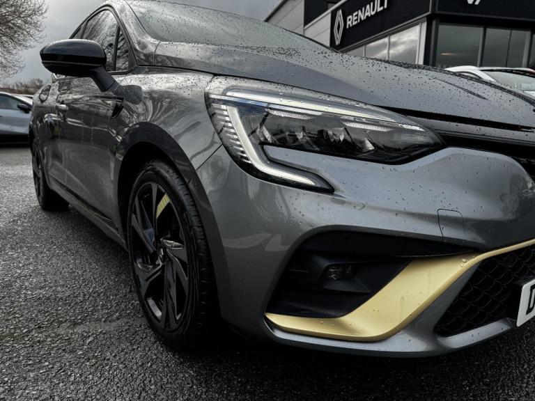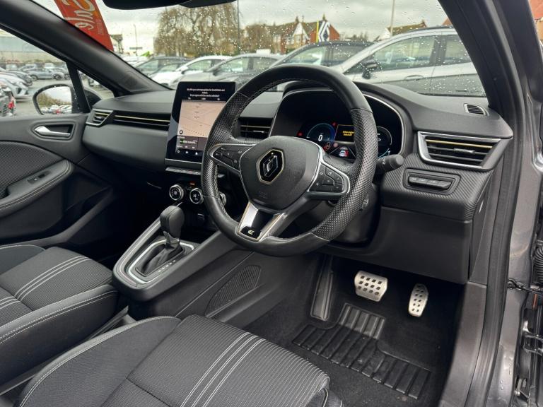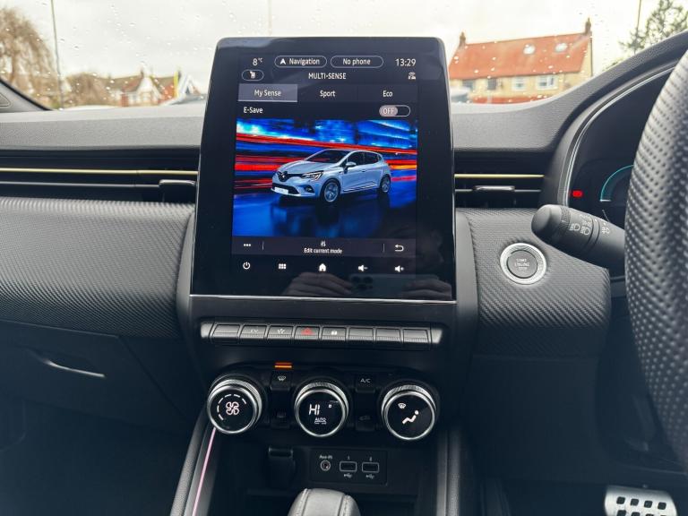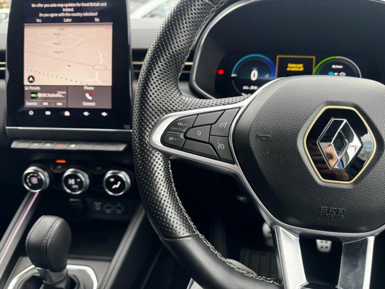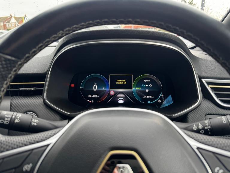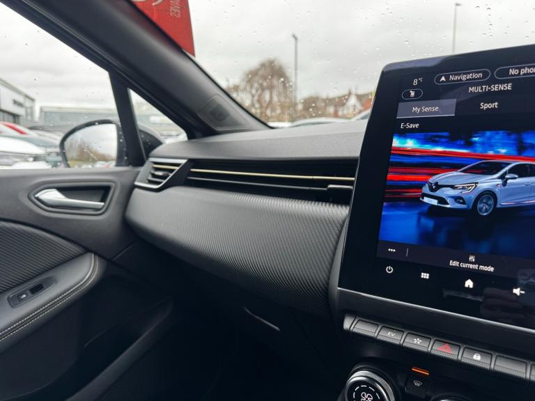 ..10'' driver information display cluster, Apple car play/Android Auto, Cruise control + speed limiter, E-call, Easy link navigation with 9.3'' touchscreen+4x20W amplifier+FM DAB double tuner, sound auditorium, 2xUSB/1xjack/bluetooth, smartphone integration plus, Eco mode driving function, Emergency call system, Front parking sensors, Gear change indicator, Lane departure warning system, Lane keep assist, Over speed prevention warning, Rear parking sensors, Rear view camera, Traffic sign recognition, Trip computer, Variable assistance electric PAS, E-TECH battery, Auto dimming rear view mirror, Auto high beam assist, Auto light control and rain sensing wiper, Automatic headlights, Black Renault logo front and rear, Black wing mirrors, Body colour door handles, Bumpers - gold styling elements, Chrome front grille, Drivers one touch window with anti-pinch feature, E-TECH badging, gold sports front bumper, sports lower grill, side and rear E-TECH engineered markings and gold detailing, Electric front windows, Electric rear windows, Exterior rear hidden door handles, Extra tinted glass on rear windows + tailgate, Front and rear LED roof light x 2, Full C-shape LED front and rear signature lighting, Full LED front and rear headlamps integrating daytime running lights at the front and rear, Gun Metal insert on lower side doors with Clio embossing, Heated rear windscreen, LED front fog lights, LED reverse light, LED third brake light, Manual folding wing mirror mechanism, Manually adjustable door mirrors, Rear fog lights, Rear roof spoiler - gold styling elements, Rear side wing doors, Rear wiper, Shark fin antenna, Variable speed on front windscreen wipers, 12V Accessory socket, 3 rear height adjustable headrests, 3 seat bench in 2nd row, 6.2L front glovebox, 60/40 split and fixed base rear seat bench, Air recirculation control, Auto climate control, Black headlining, Black hooks on boot floor x 4, Centre console with storage and armrest, Dark roof lining and aluminimum pedal set, E-TECH Engineered interior trim including airvent gold stripe, renault diamond gold surround and gearshifter with gold stitching, Fabric upholstery, Front cupholders, Front decor strip in red, Front door storage bin, Height adjustable front headrests, Height/reach adjust steering wheel, Isofix system on outer rear seats, Luggage nets in boot, Mechanical height adjustable front seats, Multi function steering wheel, Multisense including ambient lighting and selectable drive modes,