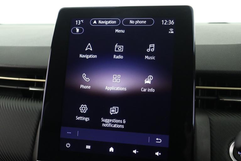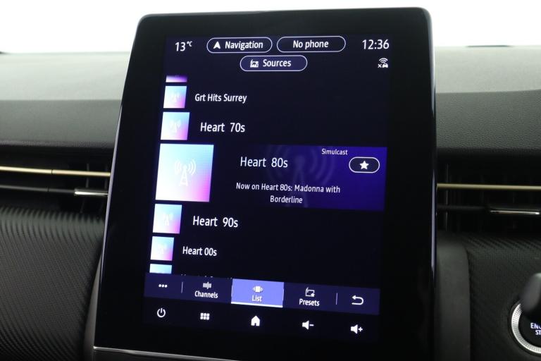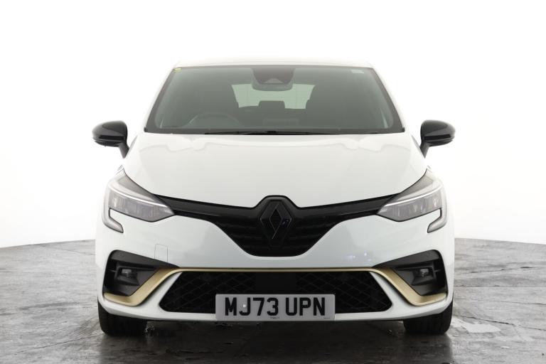 ..10'' driver information display cluster, Apple car play/Android Auto, Cruise control + speed limiter, E-call, Easy link navigation with 9.3'' touchscreen+4x20W amplifier+FM DAB double tuner, sound auditorium, 2xUSB/1xjack/bluetooth, smartphone integration plus, Eco mode driving function, Emergency call system, Front parking sensors, Gear change indicator, Lane departure warning system, Lane keep assist, Over speed prevention warning, Rear parking sensors, Rear view camera, Traffic sign recognition, Trip computer, Variable assistance electric PAS, E-TECH battery, Auto dimming rear view mirror, Auto high beam assist, Auto light control and rain sensing wiper, Automatic headlights, Black Renault logo front and rear, Black wing mirrors, Body colour door handles, Bumpers - gold styling elements, Chrome front grille, Drivers one touch window with anti-pinch feature, E-TECH badging, gold sports front bumper, sports lower grill, side and rear E-TECH engineered markings and gold detailing, Electric front windows, Electric rear windows, Exterior rear hidden door handles, Extra tinted glass on rear windows + tailgate, Front and rear LED roof light x 2, Full C-shape LED front and rear signature lighting, Full LED front and rear headlamps integrating daytime running lights at the front and rear, Gun Metal insert on lower side doors with Clio embossing, Heated rear windscreen, LED front fog lights, LED reverse light, LED third brake light, Manual folding wing mirror mechanism, Manually adjustable door mirrors, Rear fog lights, Rear roof spoiler - gold styling elements, Rear side wing doors, Rear wiper, Shark fin antenna, Variable speed on front windscreen wipers, 12V Accessory socket, 3 rear height adjustable headrests, 3 seat bench in 2nd row, 6.2L front glovebox, 60/40 split and fixed base rear seat bench, Air recirculation control, Auto climate control, Black headlining, Black hooks on boot floor x 4, Centre console with storage and armrest, Dark roof lining and aluminimum pedal set, E-TECH Engineered interior trim including airvent gold stripe, renault diamond gold surround and gearshifter with gold stitching, Fabric upholstery, Front cupholders, Front decor strip in red, Front door storage bin, Height adjustable front headrests, Height/reach adjust steering wheel, Isofix system on outer rear seats, Luggage nets in boot, Mechanical height adjustable front seats, Multi function steering wheel, Multisense including ambient lighting and selectable drive modes,