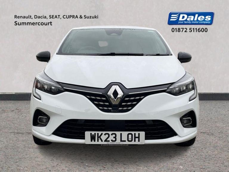 This 2023 Renault Clio 1.6 E-tech Hybrid 145 Techno 5Dr Auto Hatchback, finished in a sleek Glacier white colour, has covered just 24651 miles. The car is packed with modern features including a 7"" driver information display cluster, Apple CarPlay/Android Auto compatibility, automatic headlights, cruise control, lane departure warning system, rear parking sensors, and a rear view camera. Its chic exterior sports a black headlining, body coloured features, chrome accents, and 17"" Viva stella diamond cut alloy wheels with grey/black inserts. Inside, it offers 3D Fabric velvet upholstery, a cosy grey interior with ambient lighting, and the convenience of features like an electric front windows, a wireless phone charger, and an Easy Link navigation system with touchscreen. The Clio prioritises safety with features like multiple airbags, emergency call system, Electronic Stability Control (ESC), and a traffic sign recognition system. It also boasts modern touches like an E-TECH battery, hands-free key card start, and a multi-function steering wheel for a comfortable and connected driving experience.