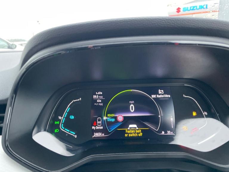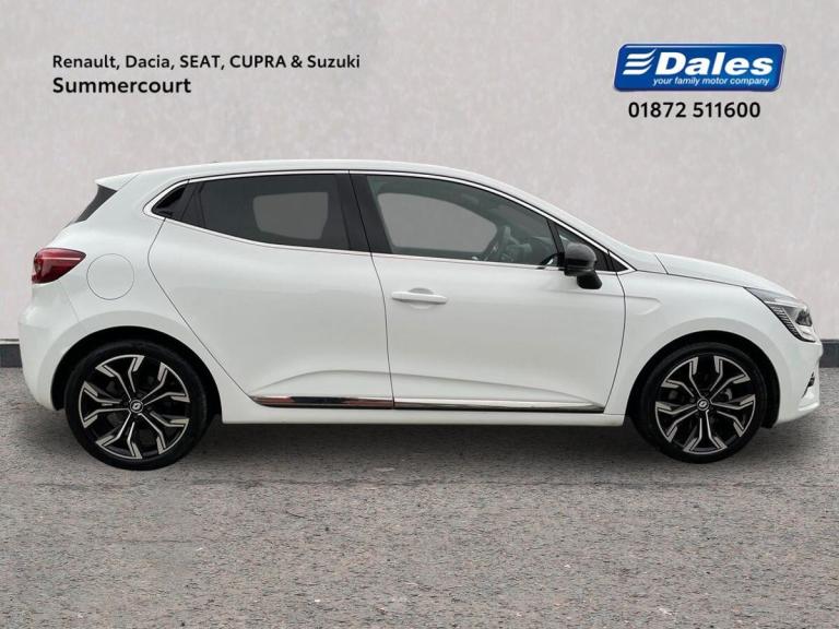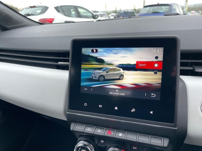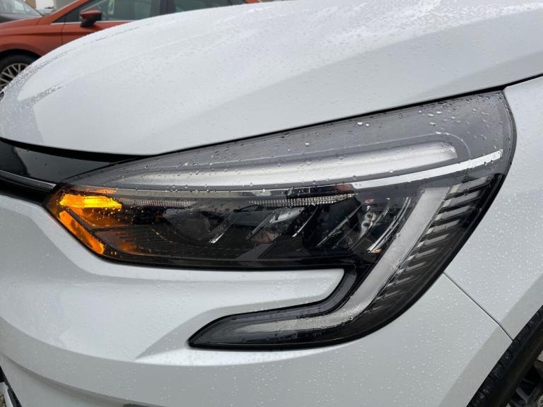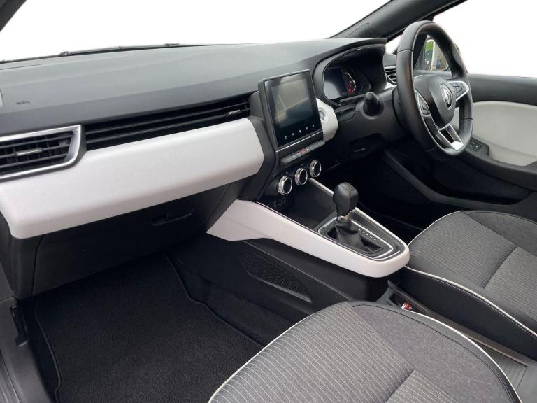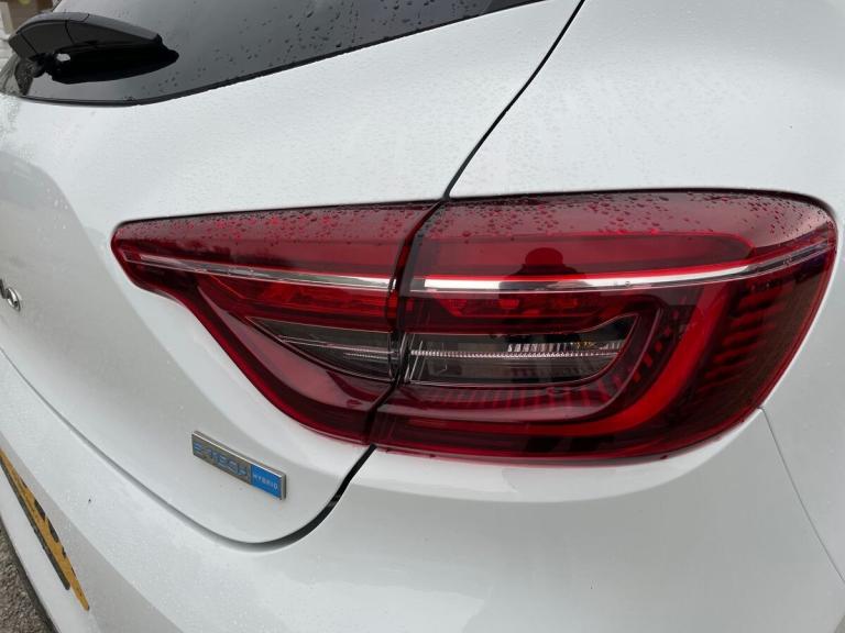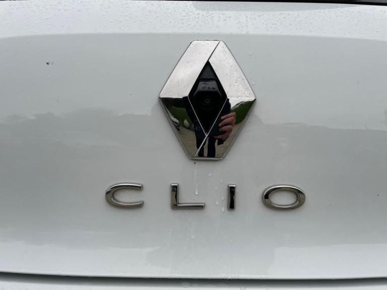 This 2023 Renault Clio 1.6 E-tech Hybrid 145 Techno 5Dr Auto Hatchback in Glacier White has covered just 24651 miles. It comes equipped with a range of features such as 17"" Viva stella diamond cut alloy wheels with grey/black inserts, a 7"" driver information display cluster, cruise control, Apple CarPlay/Android Auto integration, automatic headlights and wipers, and a multi-function steering wheel. Safety features include ABS, curtain airbags, lane departure warning, rear parking sensors, and a rear view camera. The interior boasts 3D Fabric velvet upholstery, Eco mode driving function, Easy link navigation with touchscreen, and a wireless phone charger. This compact hatchback is efficient and stylish, making it a practical choice for urban driving.