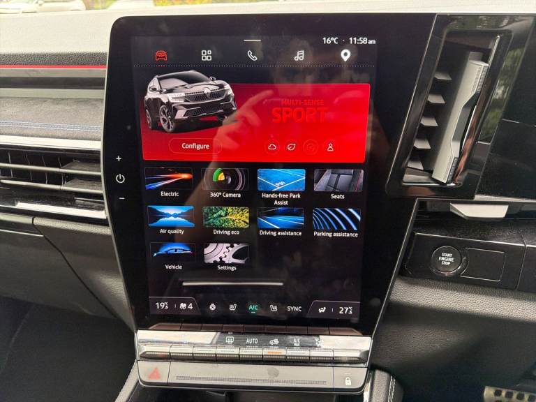 ..Driver Convenience,360 Around View 3D Camera,9.3in Head-up Display,Autonomous Driving Level 2 - Adaptive Cruise Control with Speed Limiter - Lane Centering and Hands-Off Detection,Blind Spot Warning,Distance Warning Alert,Driver Attention Alert,Eco Mode,LDW - Lane Departure Warning,Multisense Driving Modes - Eco - Comfort - Sport - Normal,Parking Sensors - Front - Rear - Side,Traffic and Speed Sign Recognition with Overspeed PreventionEntertainment,12in OpenR Multimedia Screen,E-Call - Automatic Emergency Assist,Google Built-in - Maps - Assistant - Playstore,Premium Harman Kardon Audio System with 12 Speakers,Shark Fin Antenna,USB-C Ports - 2x Front - 2x Rear,Wireless Phone ChargerExterior,20in Alloy Wheels - Daytona,Door Mirrors - Electric Folding with Heater and Memory,Electric One-Touch Power Front and Rear Windows,esprit Alpine Detailing,Flush Roof Bars,Heated Rear Window,Panoramic Sunroof,Rear Tinted Windows,Tyre Inflation KitInterior,12.3in Driver Information Display,Air Conditioning - Automatic Dual-Zone,Air Purifier,Electric Front Seats with Lumbar Adjustment - Massage Function - Driver Recognition - Easy Access,Electric Power Boot Opening,False Floor in Boot,Frameless Rear View Mirror with Rain and Light Sensor,Heated Front Driver and Passenger Seats,Heated Steering Wheel,Interior Ambient Lighting,Regenerative Braking Paddles,Sliding Centre Console Handrest,Sliding Rear Bench,Steering Wheel - esprit Alpine LeatherEntertainment,12in OpenR Multimedia Screen,E-Call - Automatic Emergency Assist,Google Built-in - Maps - Assistant - Playstore,Premium Harman Kardon Audio System with 12 Speakers,Shark Fin Antenna,USB-C Ports - 2x Front - 2x Rear,Wireless Phone Charger