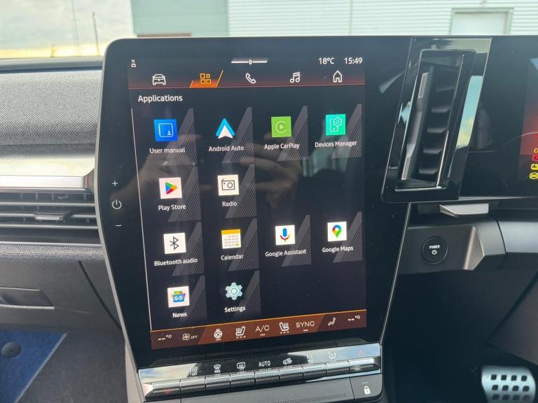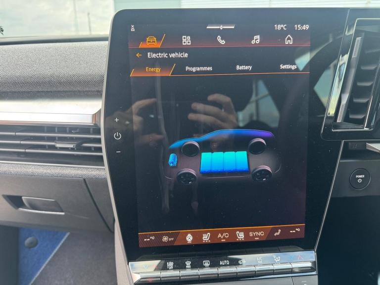 Renault Scenic E-Tech 160kW Esprit Alpine 87kWh Long Range 5dr Auto..12'' openR multimedia screen, 12.3'' driver information display cluster, Active driver assist, Autonomous driving level 2: adaptive cruise control with speed limiter and lane centering, Blind spot recognition and intervention, Connected services including over the air updates, Driver attention alert system, e-Call (emergency call), Ecomode function, Electric power boot opening, Emergency lane keep assist including solid line, oncoming traffic and road edge detection, Front and rear park assist, Google built-in: maps, assistant and playstore, Intelligent adaptive cruise control, Lane change warning, Lane departure warning, Multisense: customisable driving modes (personalised, sport, eco, comfort), PAS, Rear cross traffic alert with rear automatic braking system, Rear parking camera, Traffic sign recognition with over speed warning, Wireless phone charger, Wireless smartphone replication and integration via iOS carplay and google, wifi and usb, DC 150 and AC 22, Mode 3 home wallbox cable, 2 front and 2 rear USB-C ports, Arkamys audio system with 6 speakers, 3rd brake light, Auto-tilting and folding wing mirrors with puddle lamp, Automatic daytime running lights, Automatic headlights, Automatic high/low beam, Automatic windscreen wipers with rain sensor and sensitivity setting, e Flush door handles, Electric one-touch power front and rear windows, Electrically folding wing mirrors, Esprit Alpine styling (badge), Flush roof bars, Frameless auto dimming rear view mirror with brightness adapt, Full led headlights with adaptive led front and rear fog lights (afs), Rear side wing doors, Rear window defroster, Rear wiper, Satin grey detailing, Shark fin antenna, Tinted rear windows, Twin reversing lights, 3 seat bench in 2nd row, Ambient lighting, Electrically adjustable lumbar support for driver, Esprit alpine interior (blue carpet, blue door panel inserts, blue detailing in storage compartments), Fabric/recycled mesh upholstery, Front and rear headrests, Heat pump, Heated steering wheel, High centre console with sliding armrest and storage, Ingenious rear armrest, ISOFIX child seat fixing points on rear outermost seats, Manual front seats with height adjustment, Manual height and depth adjustable steering wheel, Paddle shift levers for regenerative braking, Single front passenger seat, Specific heated sports seats with blue stitching, Two zone automatic climate control with humidity senor and