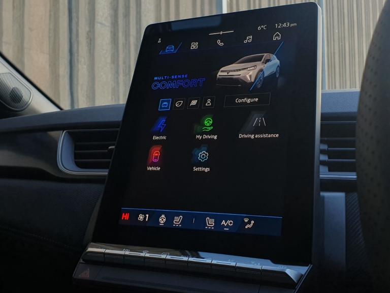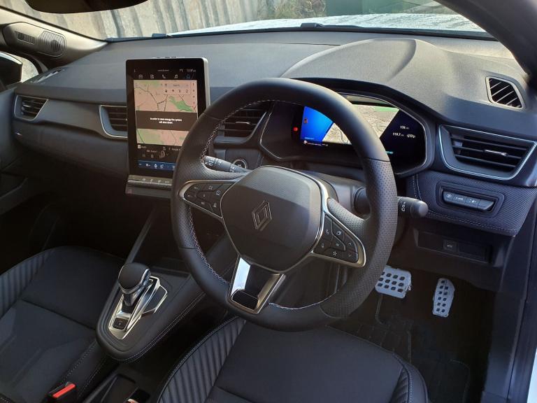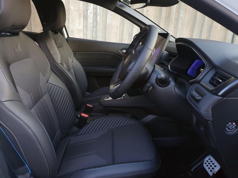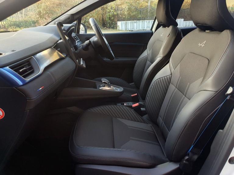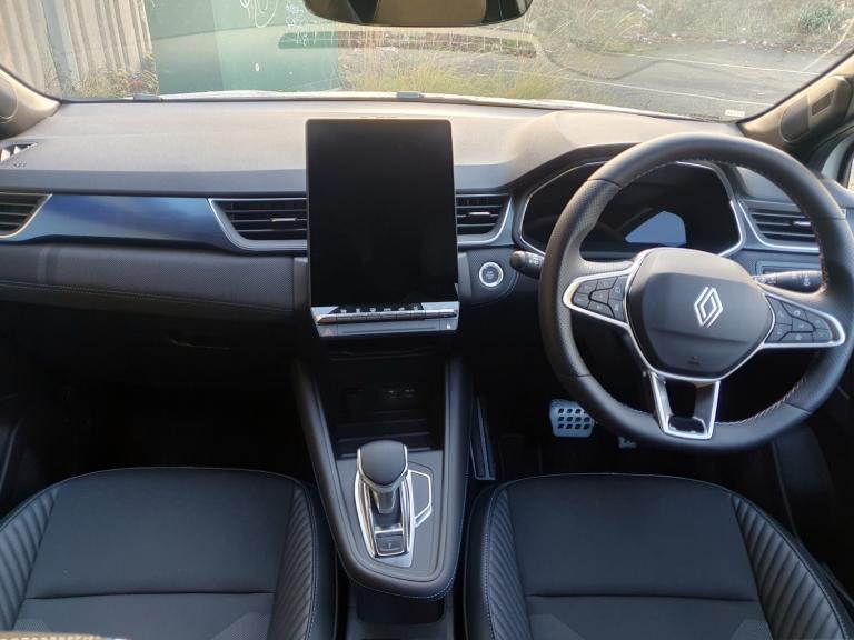 ..10.25'' digital driver display, 10.4'' OpenR link touchscreen with with built in Google Automotive Services and navigation, Adaptive cruise control with speed limiter, Blind spot warning and rear detection, Driver attention alert system, Eco mode driving function, Front, rear and side parking sensors, Front/rear detection with emergency lane keep assist incl. solid line, oncoming traffic and road edge detection, Gear change indicator, Lane centering assist, Multi Sense - 3 driving modes and up to 48 ambient lighting colours, My safety shield - ability to personalise ADAS features at press of a button, PAS, Power hands-free tailgate opening, Rear cross traffic/pedestrian alert with rear braking assitance, Rear view camera, Renault automatic emergency assist, Traffic sign recognition with overspeed prevention, Trip computer, Wifi smartphone integration compatible with Apple CarPlay and Android Auto, Wireless phone charger, 2 front and 2 rear USB-C ports, Arkamys speakers - x6 inc. 2 boomer, 2 tweeter and 2 bicone, Brushed blue decorative upper strip, DAB radio with Bluetooth, Automatic headlights, Automatic high / low beam, Automatic windscreen wipers with rain sensor, Dark tinted rear windows and tailgate, Electric adjustable/heated/auto folding door mirrors, Esprit alpine exterior styling, Frameless auto dimming rear view mirror, Front and rear electric windows with driver window one touch facility and anti pitch function, Front matte grey and rear skid plates, Full LED front and rear lights, Gloss black window surround, Heated rear window, LED daytime running lights, LED rear fog lights, LED third brake light, Lower textile strip on dashboard with red, white and blue flag, Radiator grille with 3D graphics in black upper part with grey graphics and body tone lower part, Rear side wing doors, Rear wiper, Shark fin antenna, 2 front roof LED lights and central rear rooflight with 3 reading LED lights, 3 seat bench in 2nd row, Aluminium sports pedals, Automatic air conditioning with one touch quick demist function and air quality regulator, Driver and front passenger seat with electric height adjustment, Esprit alpine interior styling, Flying console with central storage, sliding armrest and 2 rear air vents, Front and rear head restraints, Heated front seats, Heated synthetic leather steering wheel, Height and depth adjustable steering wheel, ISOFIX child seat fixing points on rear outermost seats, Modular boot floor, Rear seats - 1/3:2/3 foldable sliding