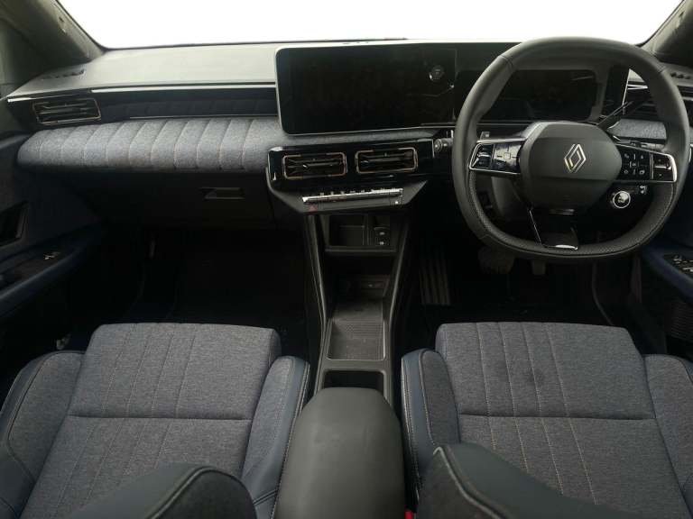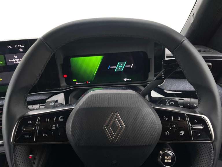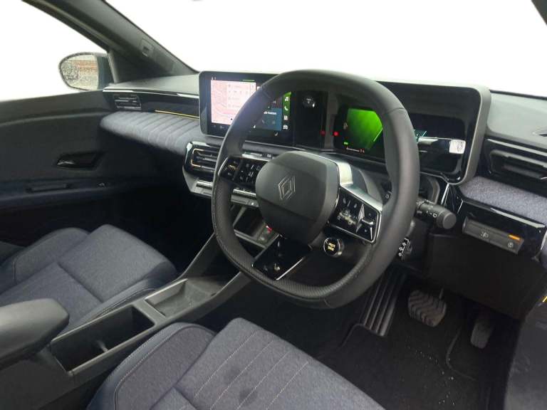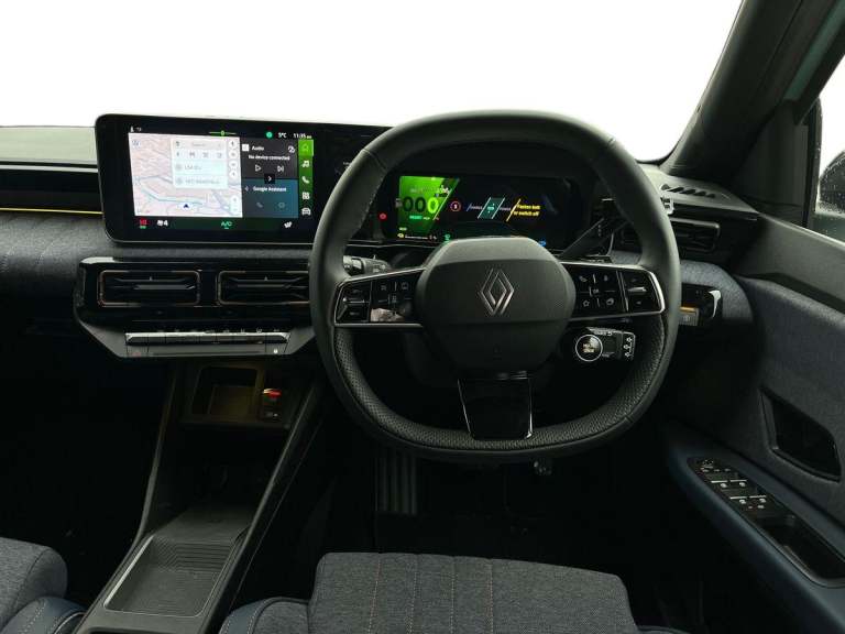 ..10.3'' digital driver information display, 2 front USB-C ports, 2 rear USB-C ports, Adaptive cruise control with stop and Go function, Bluetooth, Connected services including over the air updates, Driver attention alert system, e-Call (emergency call), Engine start button, Exterior temperature display, Front, rear and side parking sensors, Internet access, Lane departure warning system, Lane keeping assist with front and rear sensor, Miles per hour configuration, Multisense: customisable driving modes (personalised, sport, eco, comfort), My safety switch: shortcut to personalise configuration of driving aids, Navigation system with build in google maps, OpenR link 10.1'' central touchscreen multimedia system: Google built in, DC charge preconditioning, Power assisted steering, Qrescue, Rear view camera, Reno - the official Renault avatar, Safe stopping distance warning, safety coach - provide advice to the driver to improve safety score, safety score - assess ability to drive safely and help improve driving style, Self steering parking system (Handsfree parking), Service interval indicator, Speed limiter, Steering wheel mounted cruise control, Tailgate, Trip computer, Voice control for navigation system with built in google assistant, Wi-Fi hotspot, Wireless induction smartphone charger, Wireless smartphone replication and integration via Apple carplay and Android auto, AC 11kW + DC 100kW, Battery pre-conditioning for DC charging, Bi-directional charge adapter [V2L], Bi-directional charge: power to object [V2L], Fireman access - hatch designed to flood the battery quickly if needed to contain and control battery fire, Home wallbox cable [mode 3, 6.5m], SD pyro switch - disconnect the battery from high-voltage network to ensure safety as needed, Arkamys audio system, Steering wheel audio controls, 2x 3rd brake reversing light, Automatic high / low beam, Automatic LED daytime running lights, Automatic LED headlights, Automatic windscreen wipers with rain sensor and sensitivity setting, Black door mirrors, Electric adjustable door mirrors, Electric adjustable/heated/auto folding door mirrors, Frameless electrochromic interior rear view mirror, Front and rear electric windows with one touch, Front wing decor - Black ''4'' with tricolor, Heated rear window, Heated windscreen washer nozzles, LED fog lights, LED indicator signal, Manual folding door mirrors, Privacy glass, Rear side wing doors, Rear wiper, Roof rails, Shark fin antenna, Variable intermittent