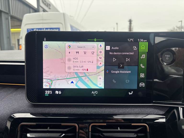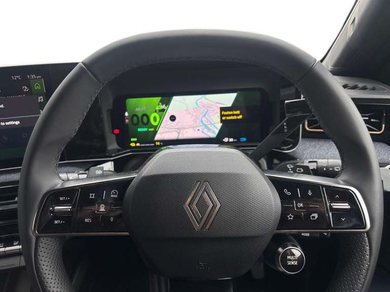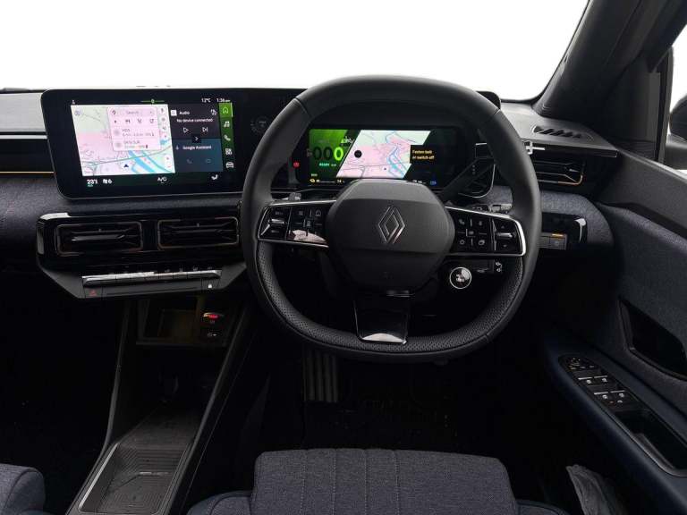 ..10.3'' digital driver information display, 2 front USB-C ports, 2 rear USB-C ports, Adaptive cruise control with stop and Go function, Bluetooth, Connected services including over the air updates, Driver attention alert system, e-Call (emergency call), Engine start button, Exterior temperature display, Front safe stopping distance warning, Front, rear and side parking sensors, Internet access, Lane departure warning system, Lane keeping assist with front and rear sensor, Miles per hour configuration, Multisense: customisable driving modes (personalised, sport, eco, comfort), My safety switch: shortcut to personalise configuration of driving aids, Navigation system with build in google maps, OpenR link 10.1'' central touchscreen multimedia system: Google built in, DC charge preconditioning, Power assisted steering, Qrescue, Rear view camera, Reno - the official Renault avatar, Safety coach - provide advice to the driver to improve safety score, Safety score - assess ability to drive safely and help improve driving style, Self steering parking system (Handsfree parking), Service interval indicator, Speed limiter, Steering wheel mounted cruise control, Tailgate, Trip computer, Voice control for navigation system with built in google assistant, Wi-Fi hotspot, Wireless induction smartphone charger, Wireless smartphone replication and integration via Apple carplay and Android auto, AC 11kW + DC 100kW, Battery pre-conditioning for DC charging, Bi-directional charge adapter [V2L], Bi-directional functionality - power to object [V2L], Fireman access - hatch designed to flood the battery quickly if needed to contain and control battery fire, Home wallbox cable [mode 3, 6.5m], SD pyro switch - disconnect the battery from high-voltage network to ensure safety as needed, Arkamys audio system, Steering wheel audio controls, 2x 3rd brake reversing light, Automatic high / low beam, Automatic LED daytime running lights, Automatic LED headlights, Automatic windscreen wipers with rain sensor and sensitivity setting, Black door mirrors, Electric adjustable door mirrors, Electric adjustable/heated/auto folding door mirrors, Frameless electrochromic interior rear view mirror, Front and rear electric windows with one touch, Front wing decor - Black ''4'' with tricolor, Heated rear window, Heated windscreen washer nozzles, LED fog lights, LED indicator signal, Manual folding door mirrors, Privacy glass, Rear side wing doors, Rear wiper, Roof rails, Shark fin antenna, Variable