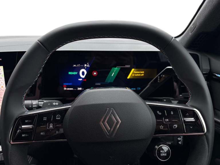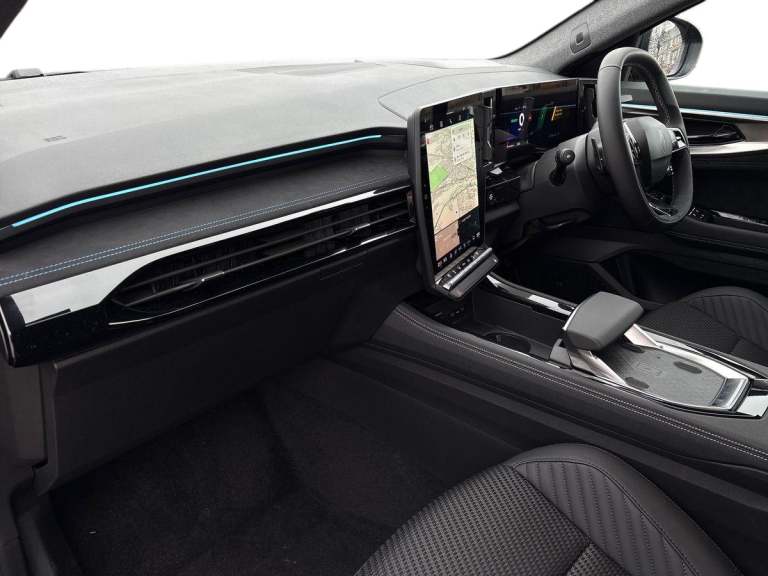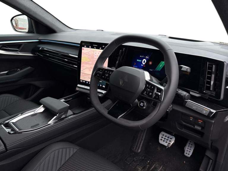 ..12'' OpenR central touchscreen multimedia system, 12.3'' driver information display cluster, 9.3'' head-up display, Blind spot warning, Bluetooth, Digital rear view camera, Driver attention alert with drowsiness warning, E-call, Eco mode, Electric power boot with handsfree opening, Engine start button, Exterior temperature display, Front, rear and side parking sensors, Front/rear detection with emergency lane keep assist incl. solid line, oncoming traffic and road edge detection, Google built-in: maps, assistant and playstore, Intelligent contextual adaptive cruise control, Intelligent speed assist with speed sign recognition and overspeed warning, Internet access, Lane centering assist, Lane change warning, Lane departure warning, MULTISENSE driving modes with 48 ambient lighting colours, My safety switch: shortcut to personalise configuration of driving aids, PAS, Performance mode selector (Sport, comfort, Perso and Eco), QR code fireman access for technical information, Qrescue, Rear cross traffic alert, Safe stopping distance warning, Service interval indicator, Tailgate, Traffic sign recognition, Trip computer, Voice control for audio, climate, telephone, navigation, Wi-Fi hotspot, Wireless phone charger, Wireless smartphone replication with apple carplay and android auto, 2 front and 2 rear USB-C ports, Arkamys audio system with 6 speakers, DAB radio, Steering wheel audio controls, Auto dimming door mirrors, Auto dimming rear view mirror, Automatic headlights and wipers, Automatic high / low beam, Black door mirrors, Body coloured bumpers, Child view rear mirror and glasses storage, Electric folding and heated door mirrors, Electric one-touch power front and rear windows, Esprit Alpine styling (Esprit Alpine badging), Flush roof bars, Frameless rear view mirror with rain and light sensor, Front wiper de-icer, Heated rear window, LED 3rd brake light, LED daytime running lights, LED rear lights with moirage effect, Matrix LED vision headlights, Rear side wing doors, Shark fin antenna, Tinted rear windows, Variable intermittent front wash/wipe, Variable intermittent rear wash/wipe, 12v power outlet - front, 12V power socket in luggage area, 2 front and 2 rear touch LED interior lighting, 3 folding rear headrests, 3 seat bench in 2nd row, 6 way electric front seats with 2 way lumbar and massage function on driver seat, Aluminium pedals, Esprit alpine interior styling - blue trim seatbelts on front seat and outermost rear, Front and rear head