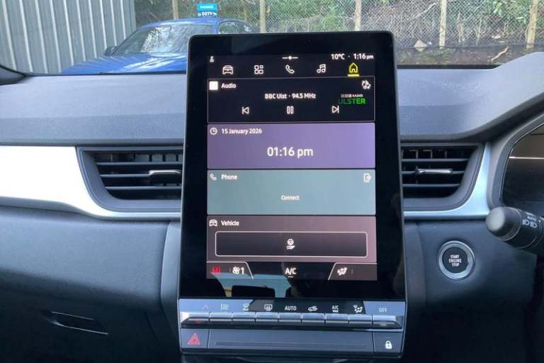 10.4 OpenR link touchscreen with Arkamys audio system, 2 front USB-C ports, 7 digital driver display, Cruise control + speed limiter, Driver attention alert system, Driver drowsiness alert system, e-Call automatic emergency assist, Eco mode, Emergency lane keep assist including solid line, oncoming traffic and road edge detection, Engine start button, Front safe stopping distance warning, Gear change indicator, Intelligent speed assistance include traffic sign recognition with speed alert, Lane departure warning system, Outside temperature display, Power assisted steering, QR code fireman access for technical information, Rear parking sensor, Rear view camera, Service interval indicator, Trip computer, Wifi smartphone integration compatible with Apple CarPlay and Android Auto, Wireless phone charger, 2 reversing lights, Auto dimming rear view mirror with light and rain sensor - black, Automatic front wipers with rain sensors, Automatic headlights, Automatic high/low beam, Body colour door handles, Body colour F1 blade, Body colour matching roof, Body coloured bumpers, Body coloured door mirrors, Dark tinted glass in rear windows and tailgate, Drivers one touch window with anti-pinch feature, Front and rear electric windows, Full LED front and rear lights, Heated door mirrors, Heated rear windscreen, LED daytime running lights, LED high level brake lights, LED rear fog lights, LED turn indicators on door mirrors, Manual folding door mirrors, Radiator grille with 3D graphic