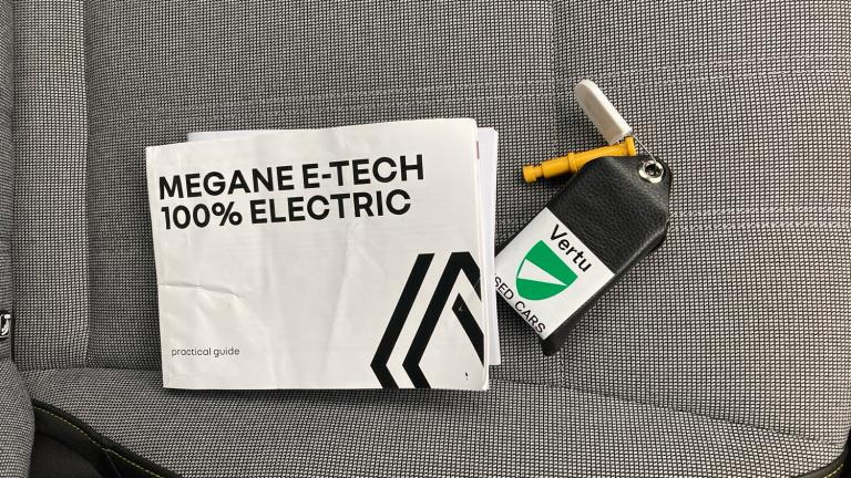 Discover the 2025 Renault Megane E-Tech Comfort Range Techno, an electric vehicle designed for modern driving. This model boasts a 60 kWh battery, offering a maximum range of 282 miles when new, ensuring you can travel further on a single charge. Charging at home with a 7kW charger takes approximately 7 hours and 24 minutes, while rapid public charging can take you from empty to 80% in just 39 minutes. Inside, you'll appreciate the comfort and convenience features, including an Arkamys Audio System with 6 speakers, a heated steering wheel for those colder days, and front and rear park assist to make manoeuvring effortless.The Renault Megane E-Tech Comfort Range Techno stands out with its impressive 282 mile maximum range, a key advantage over many other electric vehicles. Furthermore, its large boot space provides ample room for all your luggage and shopping needs, making it a practical choice for families and individuals alike. This combination of extended electric range and generous storage capacity ensures this Megane E-Tech is well equipped for both daily commutes and longer journeys..Satellite Navigation, Low Mileage& Diamond Cut Alloy Wheels, Textile floor mats, Rear wiper, Heated rear window, Front intermittent wipers, Tinted rear windows, Rear window defroster, Electric one-touch power front and rear windows, Automatic windscreen wipers with rain sensor and sensitivity setting, Traction control, ESP, Hill start assist, Anti-lock Braking System (ABS), Electric parking brake, Brake energy recuperation, Active emergency braking system - Urban and pedestrian/cyclist, Wireless smartphone replication and integration via iOS carplay and google, wifi and usb, Google assisted services, PAS, Front and rear park assist, Rear parking camera, Front parking sensors, Engine start button, Speed limiter, Rear parking sensors, Blind spot warning, Driver attention alert system, Lane departure warning, Rear cross traffic alert with rear automatic braking system, Multisense: customisable driving modes (personalised, sport, eco, comfort)