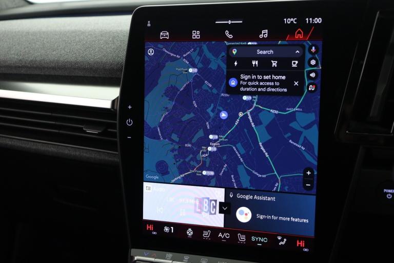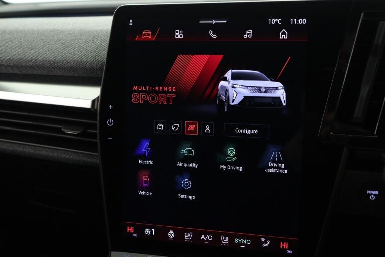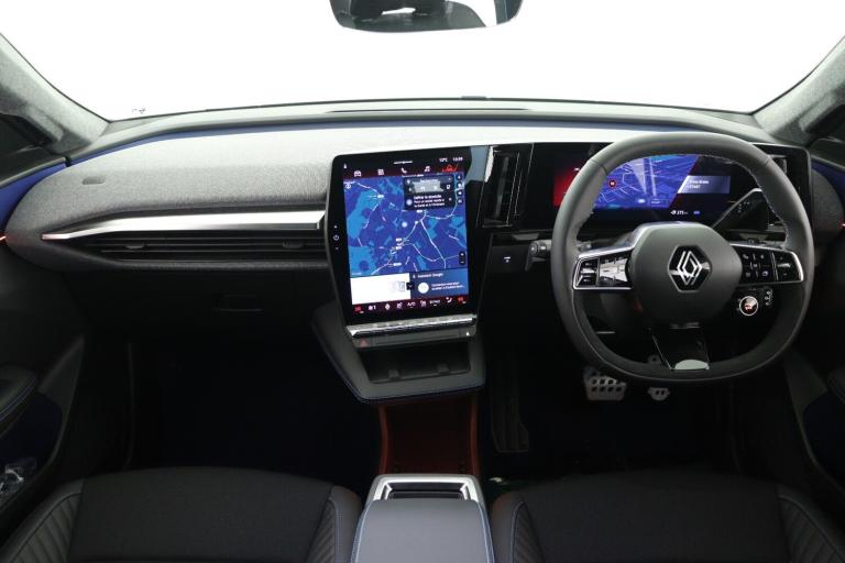 ..12'' openR multimedia screen, 12.3'' driver information display cluster, Active driver assist, Autonomous driving level 2: adaptive cruise control with speed limiter and lane centering, Blind spot recognition and intervention, Connected services including over the air updates, Driver attention alert system, e-Call (emergency call), Ecomode function, Electric power boot opening, Emergency lane keep assist including solid line, oncoming traffic and road edge detection, Front and rear park assist, Google built-in: maps, assistant and playstore, Intelligent adaptive cruise control, Lane change warning, Lane departure warning, Multisense: customisable driving modes (personalised, sport, eco, comfort), PAS, Rear cross traffic alert with rear automatic braking system, Rear parking camera, Traffic sign recognition with over speed warning, Wireless phone charger, Wireless smartphone replication and integration via iOS carplay and google, wifi and usb, DC 150 and AC 22, Mode 3 home wallbox cable, 2 front and 2 rear USB-C ports, Arkamys audio system with 6 speakers, 3rd brake light, Auto-tilting and folding wing mirrors with puddle lamp, Automatic daytime running lights, Automatic headlights, Automatic high/low beam, Automatic windscreen wipers with rain sensor and sensitivity setting, e Flush door handles, Electric one-touch power front and rear windows, Electrically folding wing mirrors, Esprit Alpine styling (badge), Flush roof bars, Frameless auto dimming rear view mirror with brightness adapt, Full led headlights with adaptive led front and rear fog lights (afs), Rear side wing doors, Rear window defroster, Rear wiper, Satin grey detailing, Shark fin antenna, Tinted rear windows, Twin reversing lights, 3 seat bench in 2nd row, Ambient lighting, Electrically adjustable lumbar support for driver, Esprit alpine interior (blue carpet, blue door panel inserts, blue detailing in storage compartments), Fabric/recycled mesh upholstery, Front and rear headrests, Heat pump, Heated steering wheel, High centre console with sliding armrest and storage, Ingenious rear armrest, ISOFIX child seat fixing points on rear outermost seats, Manual front seats with height adjustment, Manual height and depth adjustable steering wheel, Paddle shift levers for regenerative braking, Single front passenger seat, Specific heated sports seats with blue stitching, Two zone automatic climate control with humidity senor and air recycling, 3x3 point rear seat belts, Active emergency braking