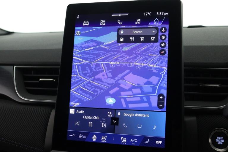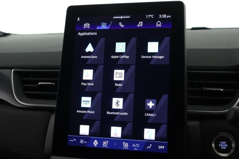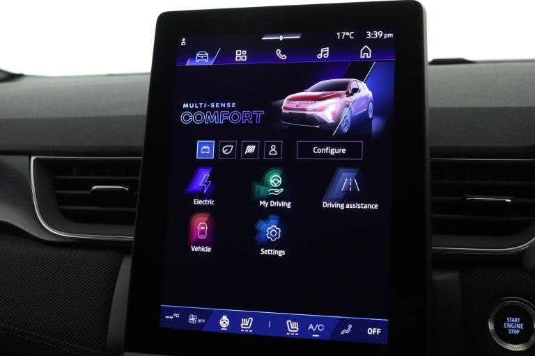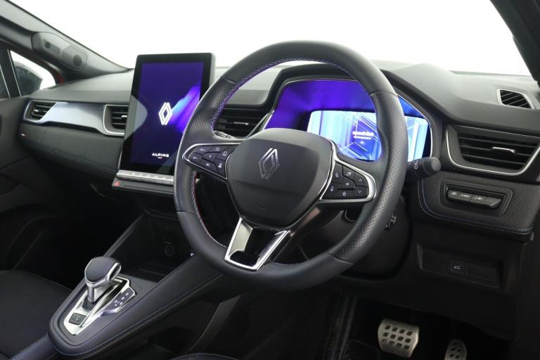 ..10.25'' digital driver display, 10.4'' OpenR link touchscreen with with built in Google Automotive Services and navigation, Adaptive cruise control with speed limiter, Blind spot warning and rear detection, Driver attention alert system, Eco mode driving function, Front, rear and side parking sensors, Front/rear detection with emergency lane keep assist incl. solid line, oncoming traffic and road edge detection, Gear change indicator, Lane centering assist, Multi Sense - 3 driving modes and up to 48 ambient lighting colours, My safety switch - ability to personalise ADAS features at press of a button, PAS, Power hands-free tailgate opening, Rear cross traffic/pedestrian alert with rear braking assitance, Rear view camera, Renault automatic emergency assist, Traffic sign recognition with overspeed prevention, Trip computer, Wifi smartphone integration compatible with Apple CarPlay and Android Auto, Wireless phone charger, 2 front and 2 rear USB-C ports, Arkamys speakers - x6 inc. 2 boomer, 2 tweeter and 2 bicone, DAB radio with Bluetooth, Automatic headlights, Automatic high / low beam, Automatic windscreen wipers with rain sensor, Dark tinted rear windows and tailgate, Electric adjustable/heated/auto folding door mirrors, Esprit alpine exterior styling, Frameless auto dimming rear view mirror, Front and rear electric windows with driver window one touch facility and anti pitch function, Front matte grey and rear skid plates, Full LED front and rear lights, Gloss black window surround, Heated rear window, LED daytime running lights, LED rear fog lights, LED third brake light, Radiator grille with 3D graphics in black upper part with grey graphics and body tone lower part, Rear side wing doors, Rear wiper, Shark fin antenna, 2 front roof LED lights and central rear rooflight with 3 reading LED lights, 3 seat bench in 2nd row, Aluminium sports pedals, Automatic air conditioning with one touch quick demist function and air quality regulator, Driver and front passenger seat with electric height adjustment, Esprit alpine interior styling, Flying console with central storage, sliding armrest and 2 rear air vents, Front and rear head restraints, Heated front seats, Heated synthetic leather steering wheel, Height and depth adjustable steering wheel, ISOFIX child seat fixing points on rear outermost seats, Modular boot floor, Rear seats - 1/3:2/3 foldable sliding bench, Recycled fabric upholstery, Single front passenger seat, Sunvisor with mirror and light, 3x3