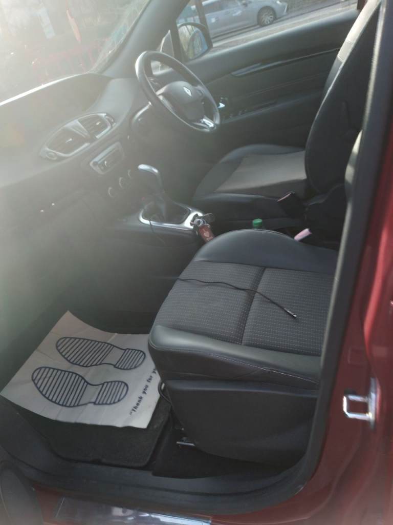 Automatic Renault 1.5 in red diesel 2013 full loaded, push bottom to start, GPS, USB, Automatic lights system and locks mot 1yr 55K. CD radio very nice car, back passengers seats come up with privately net on the windows 2 Cup and meal holders, under seats storages, you don't have to worry about lights as they're in all Automatic very cheap tax £14 a month or 170 for 12 months very economical £20 diesel will last you long depends,