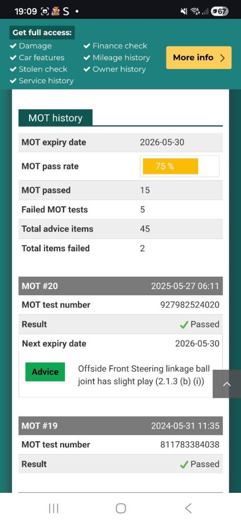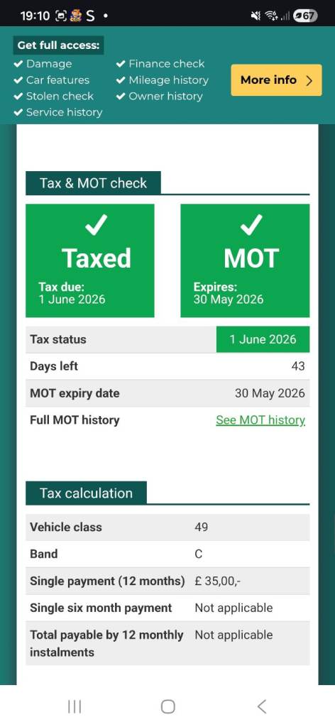 Buy the full report for guaranteed data accuracy, outstanding finance, valuation, milage check & VIN match for £9.99 (normally £19.99)