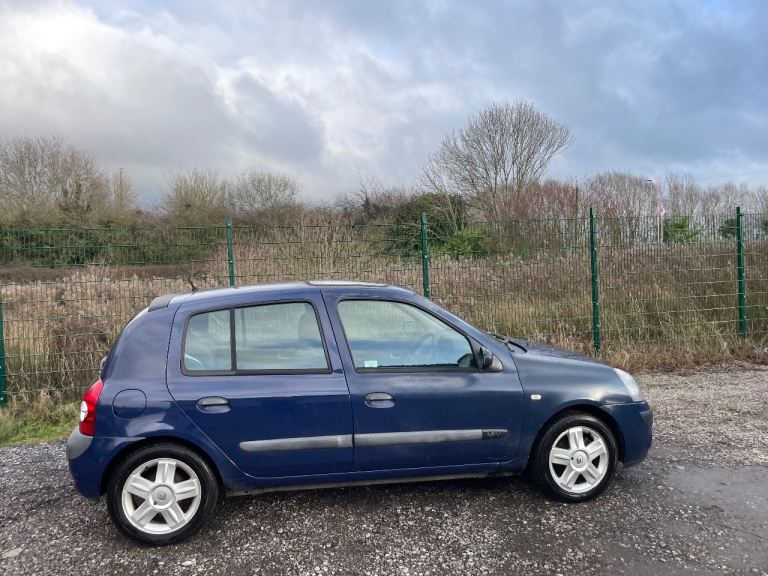 RENAULT CLIO 1.2 DYNAMIQUE PETROL 54 REG BLUE 3 DOOR HATCHBACK, WARRANTED 61677 MILES, POWER STEERING, RADIO CD PLAYER, ELECTRIC WINDOWS, 1 KEY, SUNROOF, ALLOYS, 12 MONTHS MOT, LOW INSURANCE, EXCELLENT ON FUEL