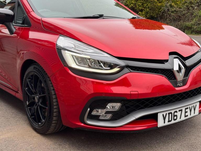 My name is Tom, owner of TML Cars, and I'm pleased to offer this 2017 Renault Clio TCe Renaultsport Nav Trophy. This is a used vehicle, presented in very good condition for its age and mileage, and has covered 46,500 miles, which is low for a vehicle of this year. The car benefits from a clear vehicle history check and is Euro 6 compliant. Powered by a 1.6-litre petrol engine, this Renaultsport Clio offers strong and responsive performance suited to both everyday driving and more spirited use. This particular example is fitted with an Akrapovi exhaust system, adding to its sporty character. It also has O.Z Alloys wrapped in Michelin Pilot Sport 5 tyres, EBC Yellow stuff brake pads, Boot spoiler, Induction system. The vehicle is equipped with a Climate Pack, including automatic climate control with one-touch demist function and air quality regulator, along with full LED headlights for improved visibility. It also features rear parking sensors and camera to assist with manoeuvring. Performance is a key highlight, with a manufacturer-quoted 062 mph time of approximately 6.6 seconds, offering a quick and engaging driving experience. The vehicle is supplied with a 1-month warranty included, with the option to extend to 3, 6, or 12 months for additional peace of mind. This sale is covered by the Consumer Rights Act 2015.