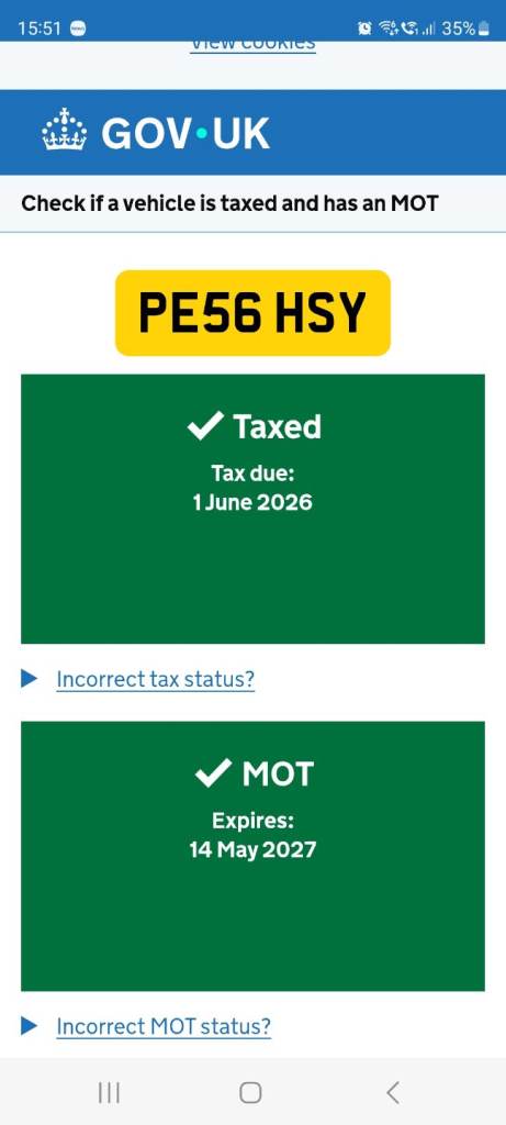 This vehicle has not been reported stolen, scrapped, exported or flagged as unroadworthy.