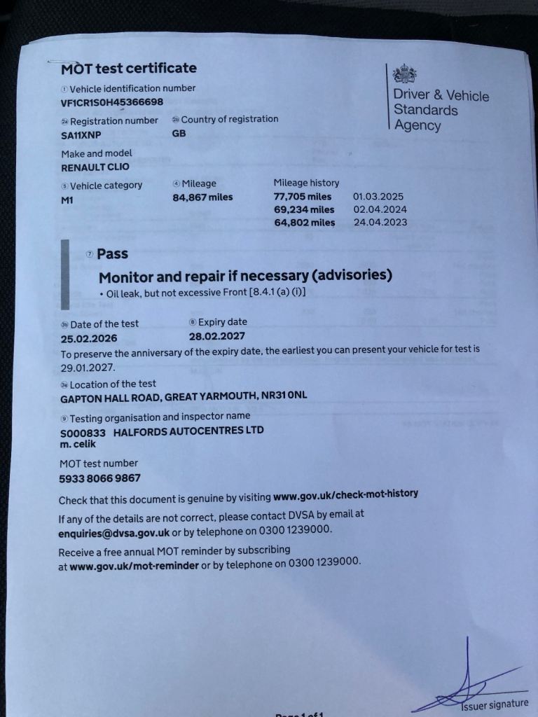 Full MOT. 12 months.