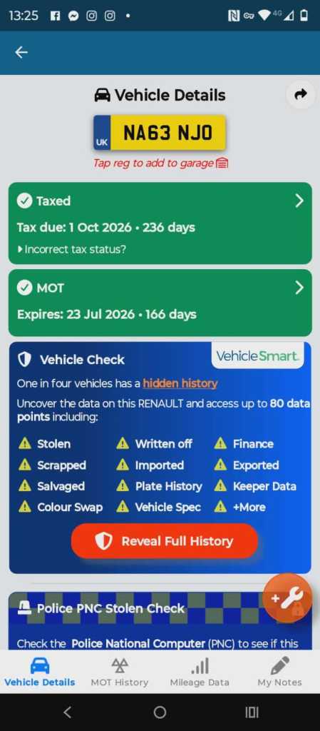 This vehicle has not been reported stolen, scrapped, exported or flagged as unroadworthy.