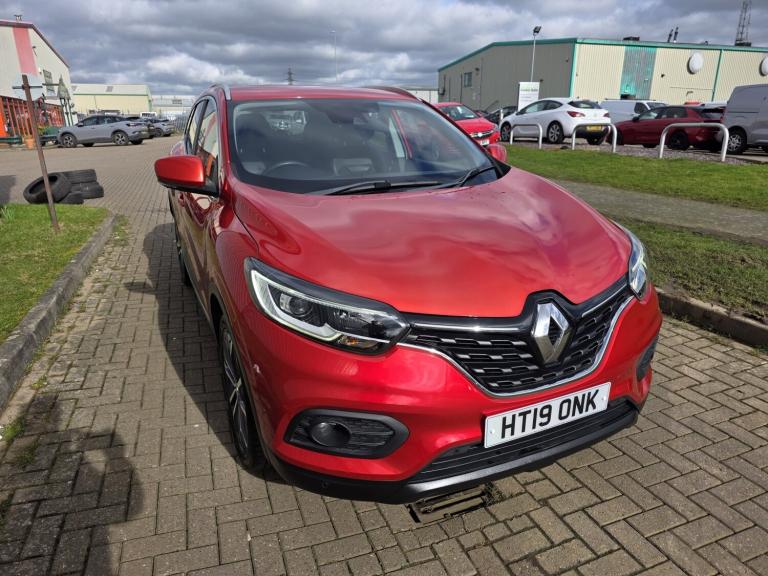 Renault Kadjar 1.3 Iconic TCe 140 MY19 finished in Red (Manual), 50204 miles with BLACK CLOTH interior, only 1 previous owner. This car comes with a Full Service History. 12 MONTHS MOT INCLUDED Only £9,495