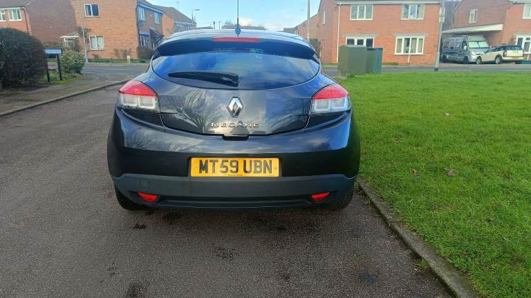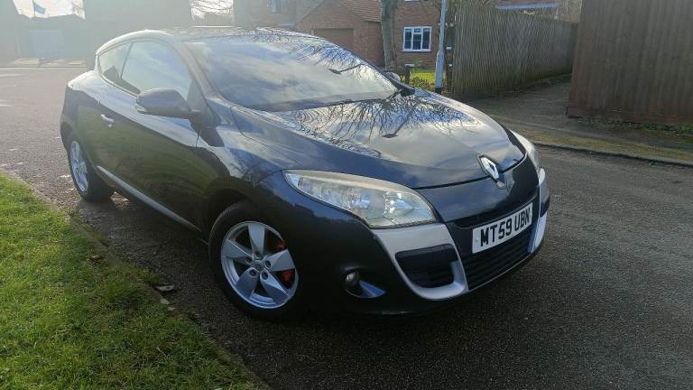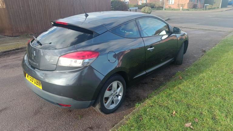 Renault Megane Coupe 1.6 Dynamique, 2009 (59 plate), finished in dark metallic grey.