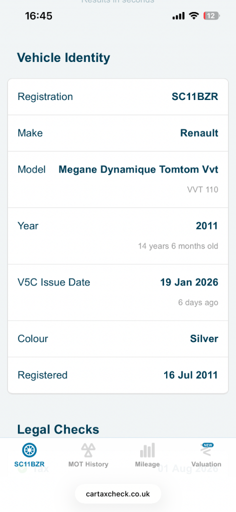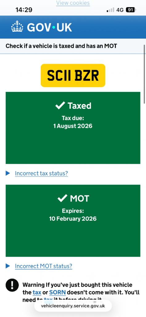 This vehicle has not been reported stolen, scrapped, exported or flagged as unroadworthy.