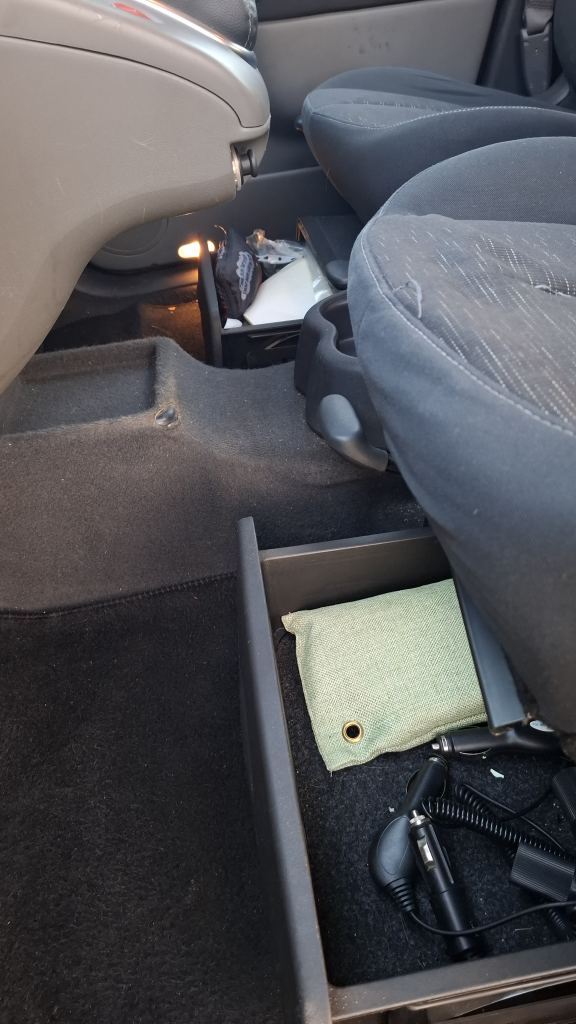 Lots of storage areas; 4x drawers under the seats, underfloor storage, if it breaks down you can use it as a filing cabinet. Cruise control, tow bar, rear blinds, picnic trays, full sized spare wheel, 2x key cards in good condition, aircon but needs a re-gas.