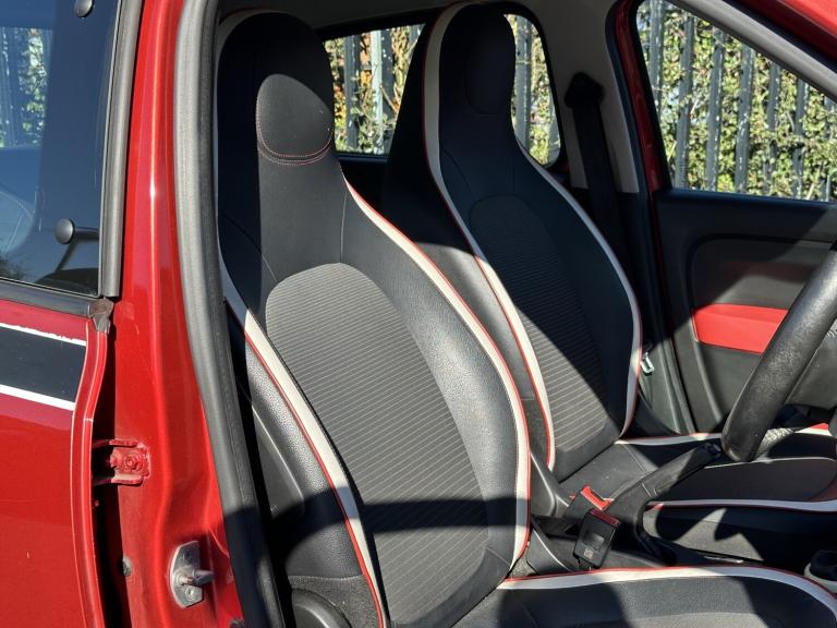 Offered with Great Service History, this stunning Twingo is great for city driving and is incredibly cost effective to run. It sits in a low tax and insurance bracket and will return fantastic fuel economy. It is excellent to drive and very easy to park. The Dynamique S sat at the top of the Twingo Range, and this example finished in Flame Red comes with gloss black alloy wheels which are freshly refurbished, and sporty stripe decals. In addition the car comes with part leather seats, DAB Radio, cruise control and telephone compatibility. Inside the car is spacious and comfortable. The 0.9 TCe engine offers ample performance being a 3-cylinder turbo-charged unit, and has recently been serviced.