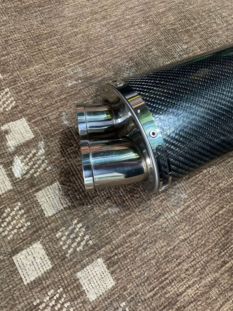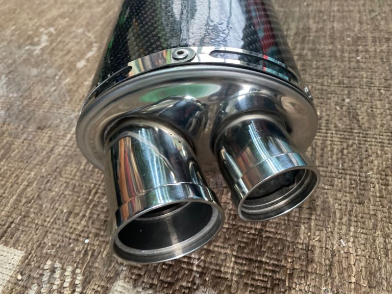 Carbon fibre sports exhaust excellent condition with fixing kit ready to go, easy fitment and a great sound. May fit other bikes but you would have to check yourself Good price, retails at £230.