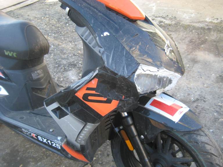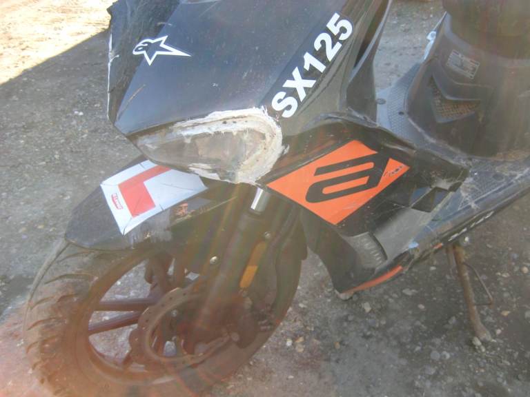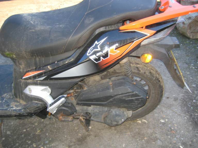 WK 2023 Moped/Scooter 125cc For Spares or Repairs, Good Battery, All lights work, Wont start on button, have not tried the kickstart procedure, Side and centre stand, Front plastic fairing has been damaged and poorly repaired. NO V5 reg Document, A bill of sale will be given upon sale.