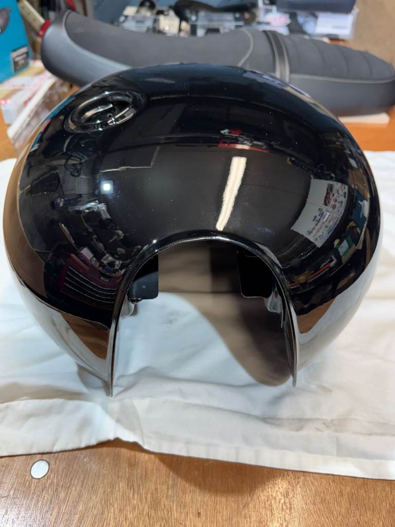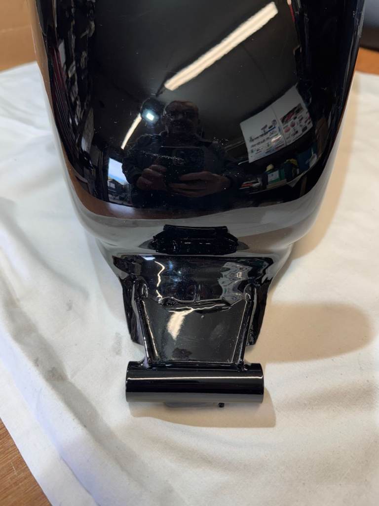 The Black Fuel Tank is unmarked no dents or scratches and removed to fit a custom painted fat tank.