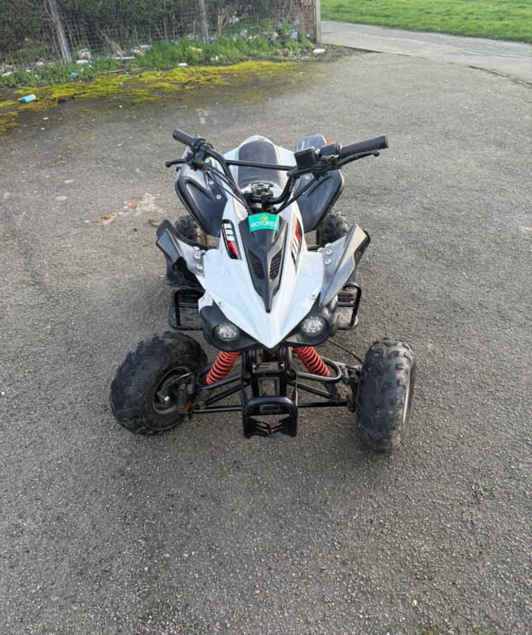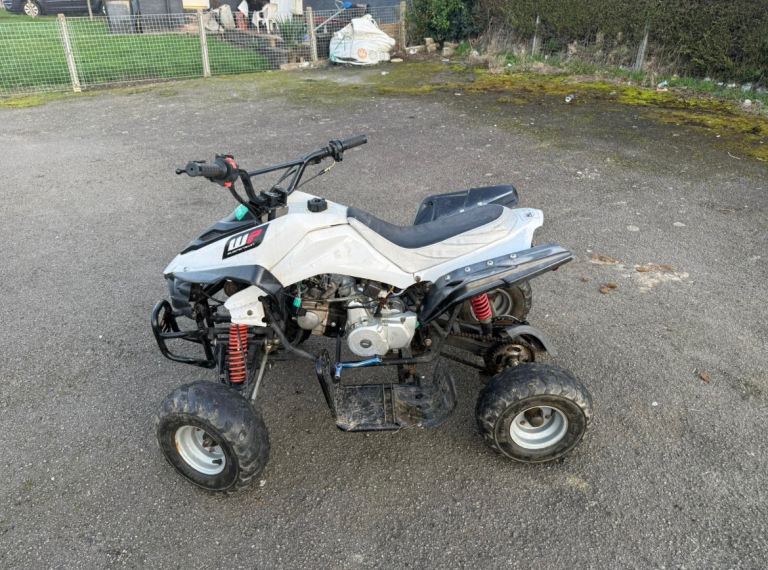 90 cc quad bike needs new battery but does start with a bump start other wise good all round quad no issues at all front and rear lights and reverse gear bargain at £280 Ono first to see will bye absolute bargain very fast too