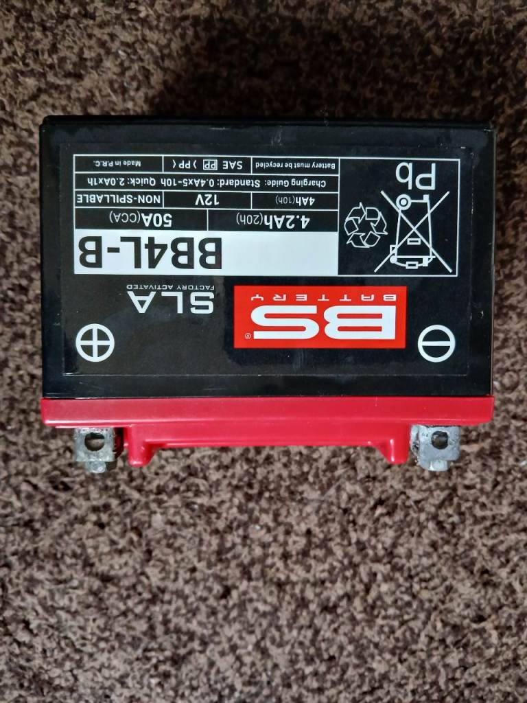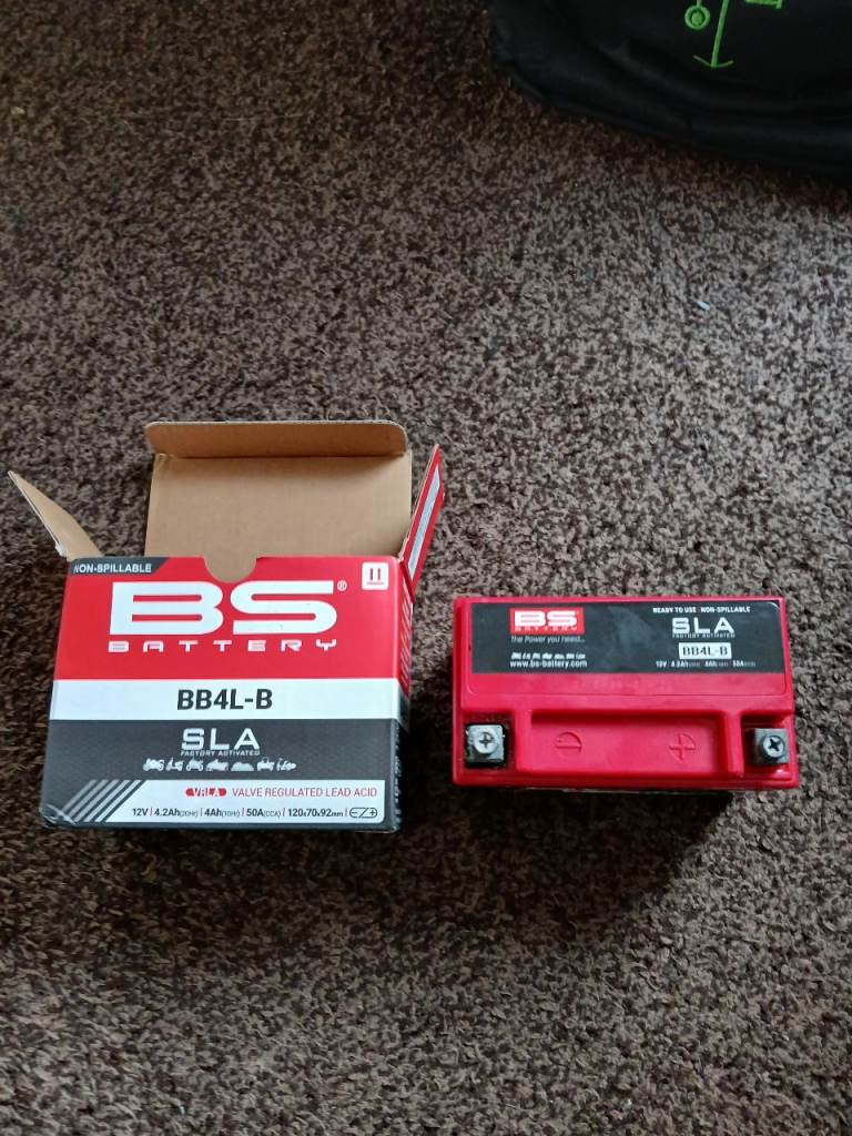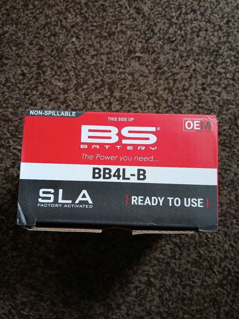Bought new Bs motorcycle battery 4ah 12 volt only used to try and get a 100cc kisbee to work to no success lit up the lights but the bike wouldn't start bike was sold for spares