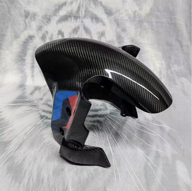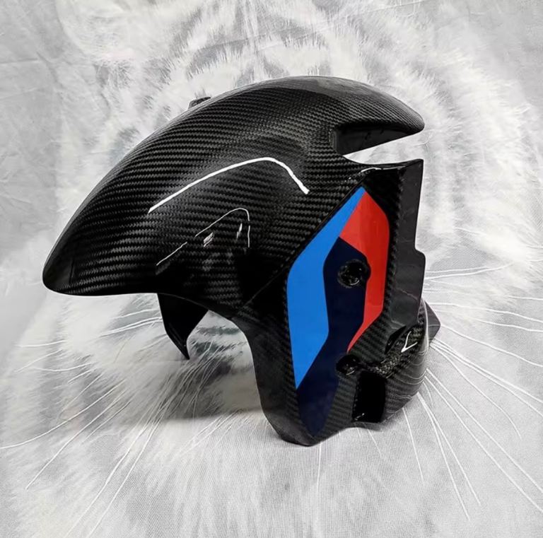 Upgrade your BMW’s front end with this premium carbon fibre front fender and integrated side panel assembly, crafted from 100% autoclave-pressed carbon fibre. Designed to combine lightweight performance with aggressive styling, this full assembly enhances coverage around your front wheel and fork area, giving your bike a refined, motorsport-inspired look.