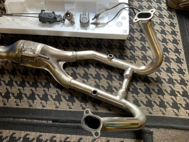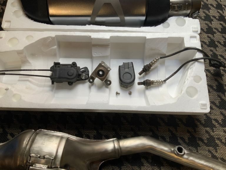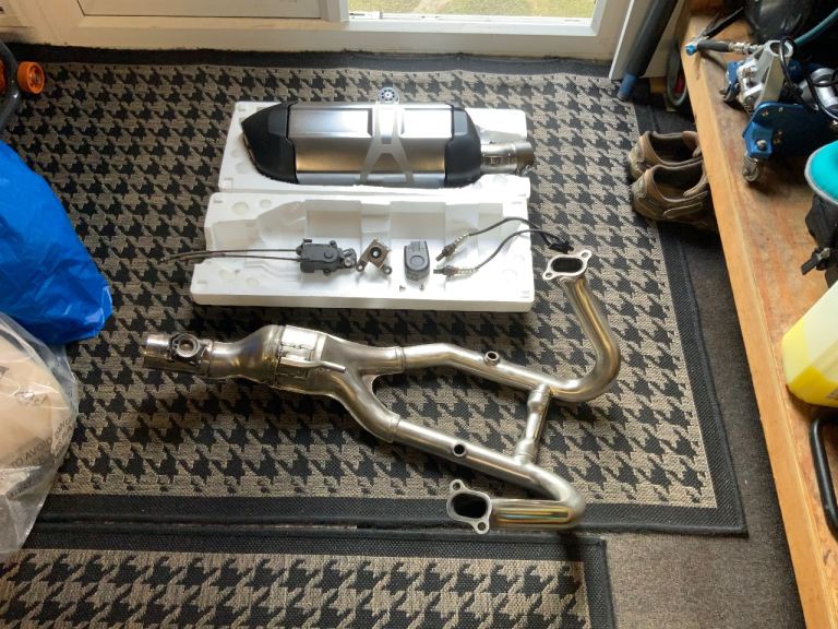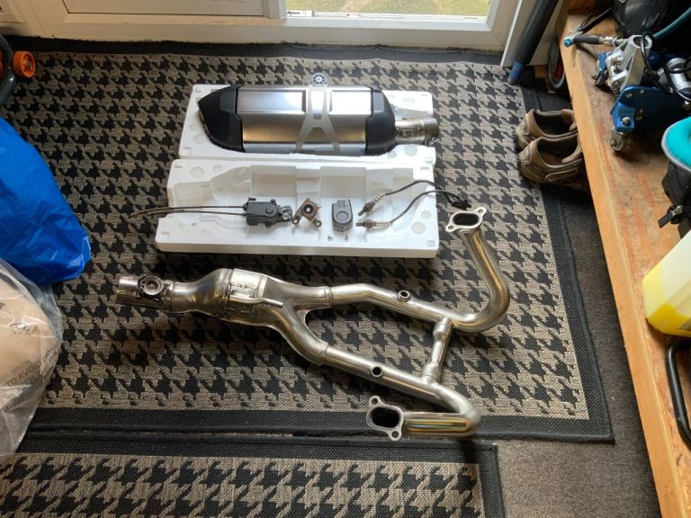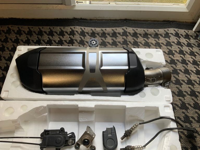 BMW gsa1200 full exhaust system, genuine BMW oem headers, back box, oxygen sensors, hanging bracket, servo flap motor. This will fit most gs motor cycles, supberb condition, removed from my own bike after a couple of hundred miles, collection only Warrington area , please message me with any questions you may have.