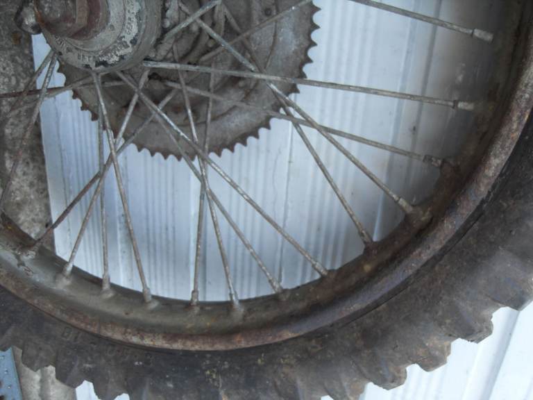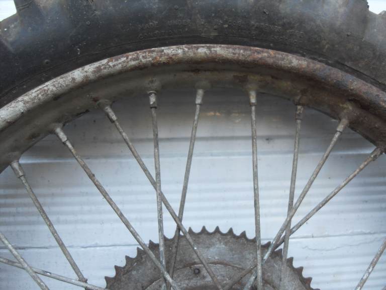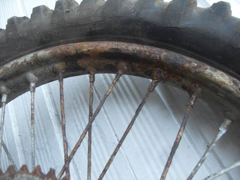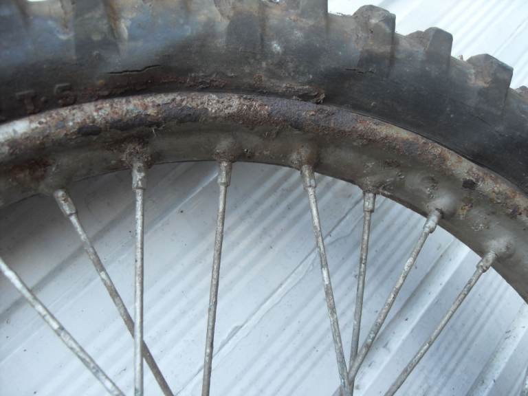 The chrome on the rim is in poor condition and has been painted over with silver paint at some point, however it is still in useable condition, (in my opinion). The spokes, I would suggest need replacing.