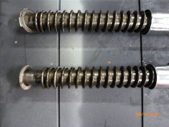 As seen in photos complete but in need of attention . One of the stanchions is quite corroded internally. Bottoms legs and threads all good , fork seal holders tatty. Located in the Swansea Valley or can post at buyers cost.