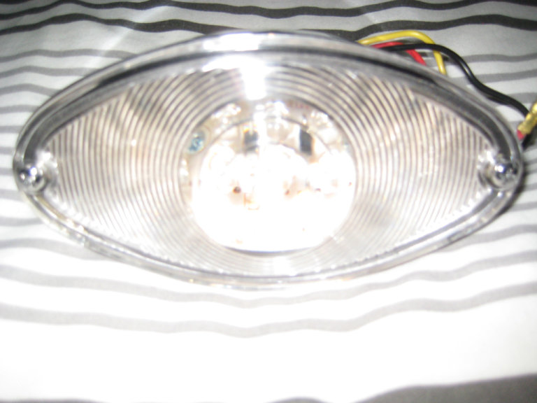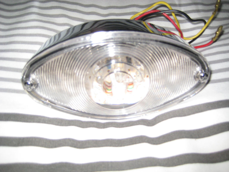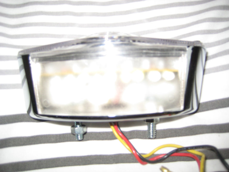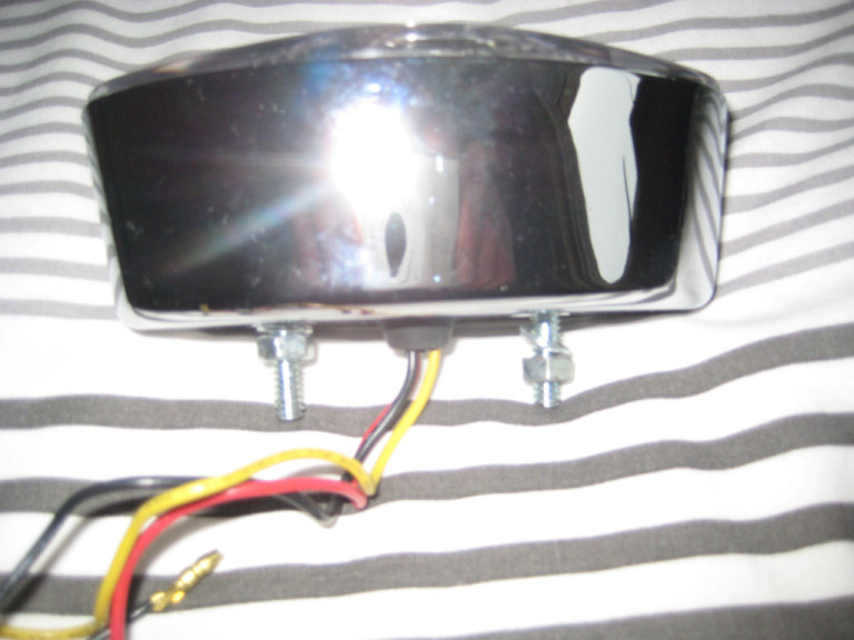 Cats Eye Shape Rear or Front Light, Brand New., 12volt, 12.5 inches long, 2.5 top to bottom. LED bulbs, Brand New, never fitted, with black, yellow and red wires bullet connectors and fixing bolts with nuts. 2 inches between the fixing bolts. This is not the usual cheap plastic rubbish, the chrome is actually on a metal surrounding. Look great on a bobber, chopper, custom or anything really. Can collect from RG27 area or im happy to post at your cost