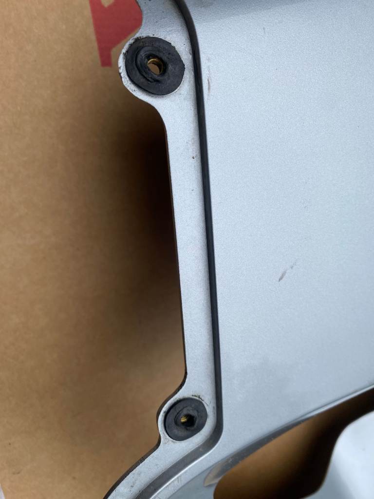 1 crash damaged original NH146 silver left side fairing. Some of the mounts and wellnuts are still intact