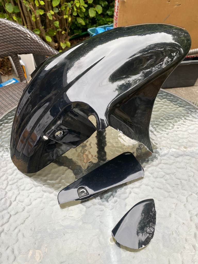 1 crash damaged aftermarket front fender / mudguard in gloss black ABS