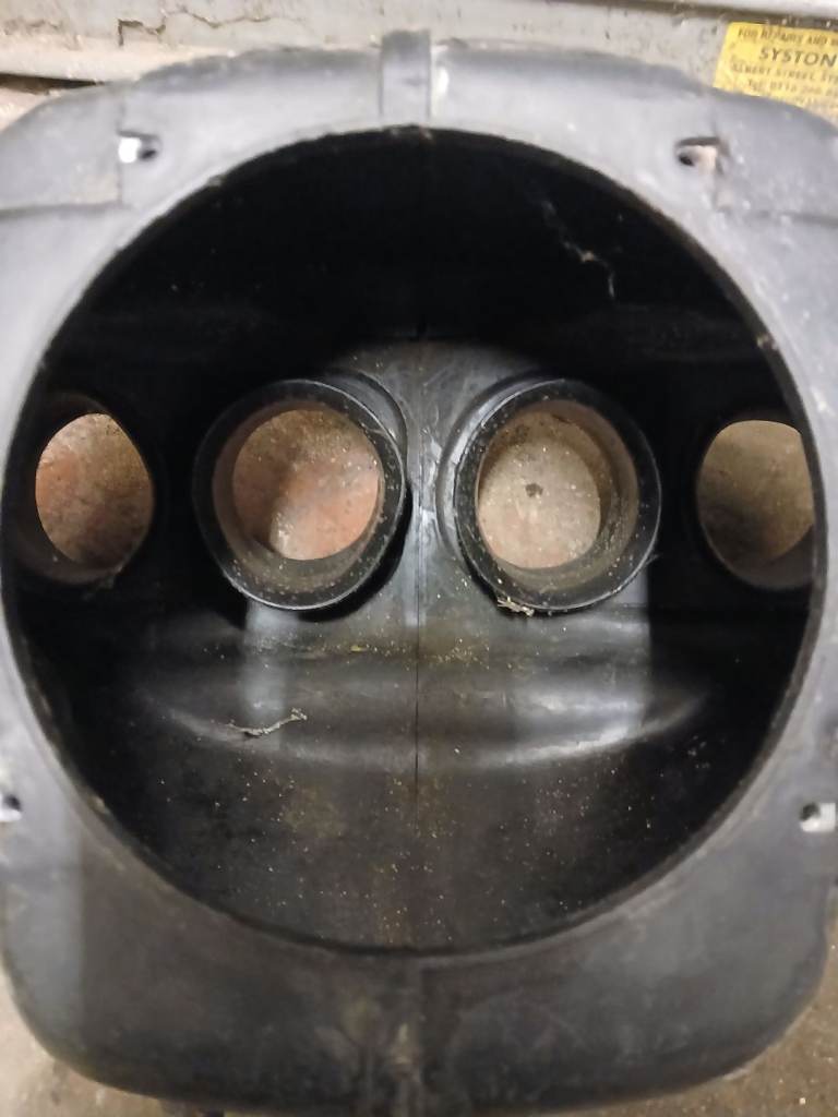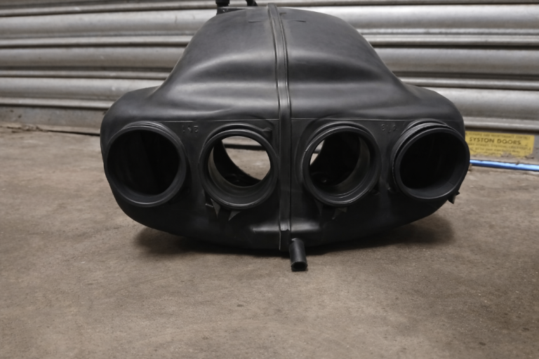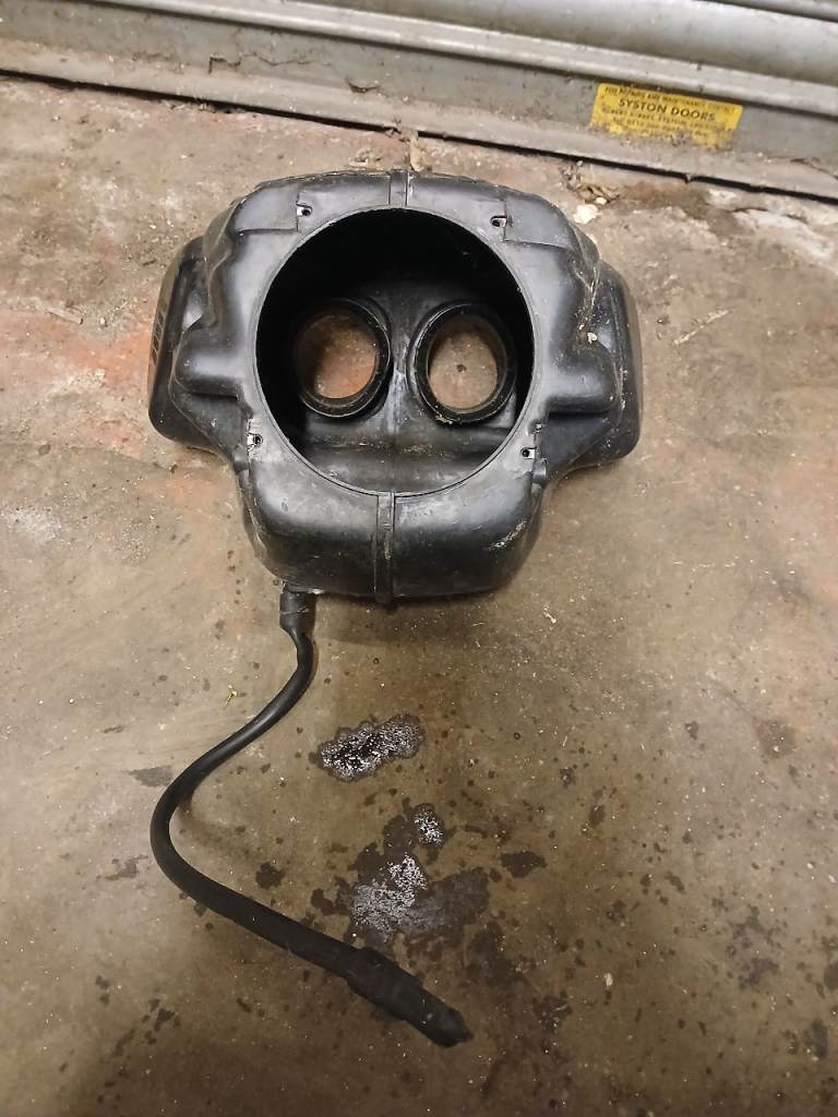 Original used air intake / air filter housing (airbox) removed from a motorcycle.