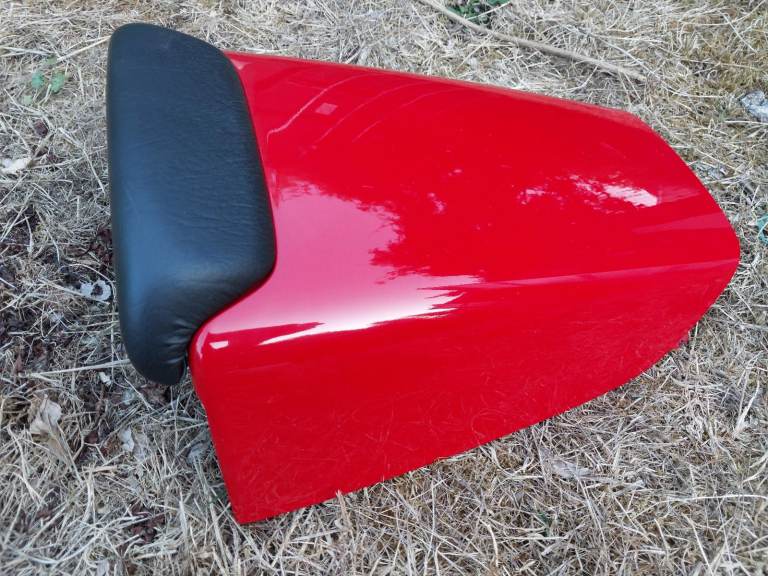 VFR 750 seat cowl/cover, in Honda Rosso red, very good, rare item, one side front location tab has cracked off. could be repaired with 3D print or other means.